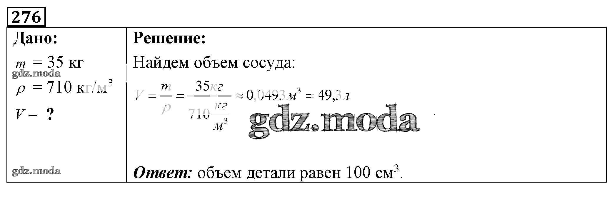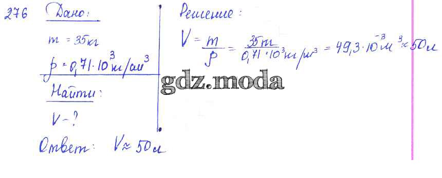 ОТВЕТ на задание № 276 Сборник задач по Физике 7-9 класс Лукашик