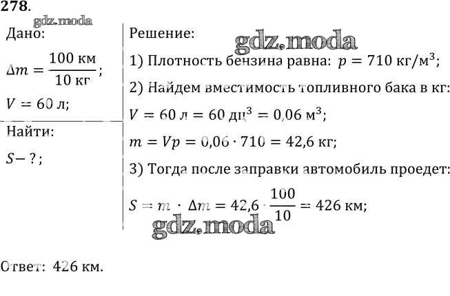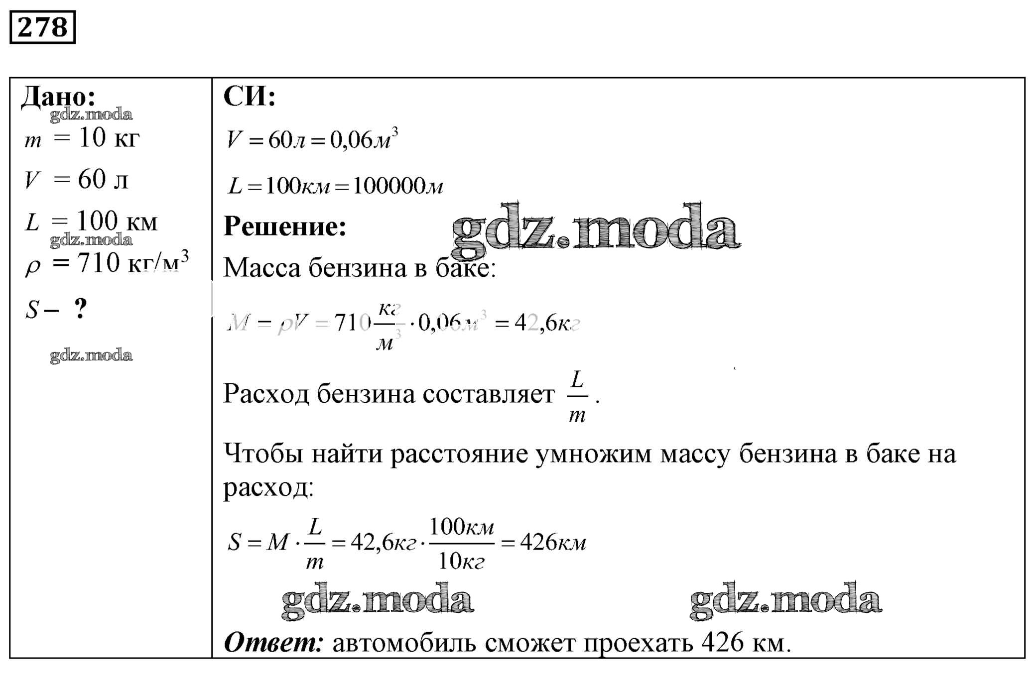 ОТВЕТ на задание № 278 Сборник задач по Физике 7-9 класс Лукашик