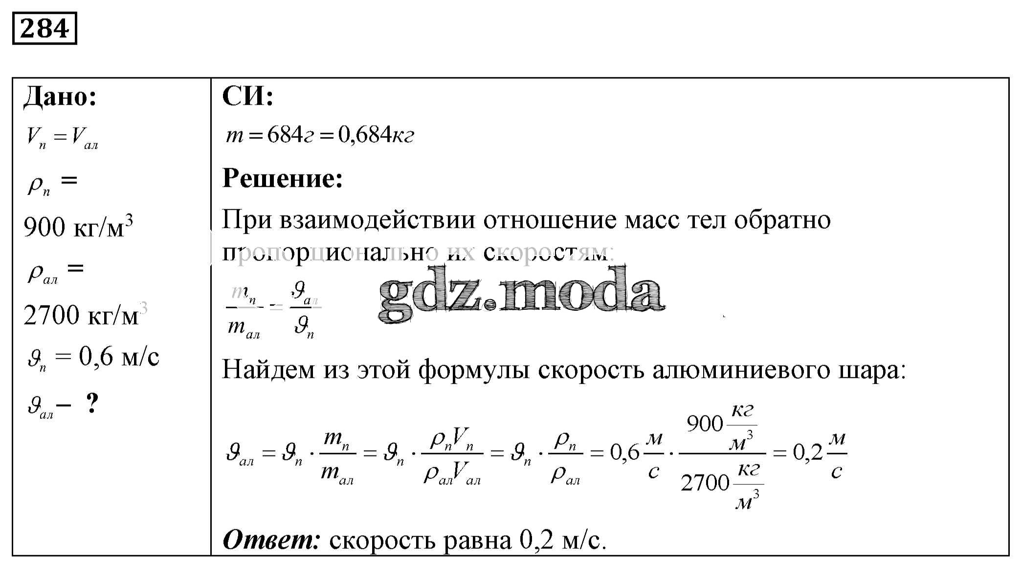 ОТВЕТ на задание № 284 Сборник задач по Физике 7-9 класс Лукашик