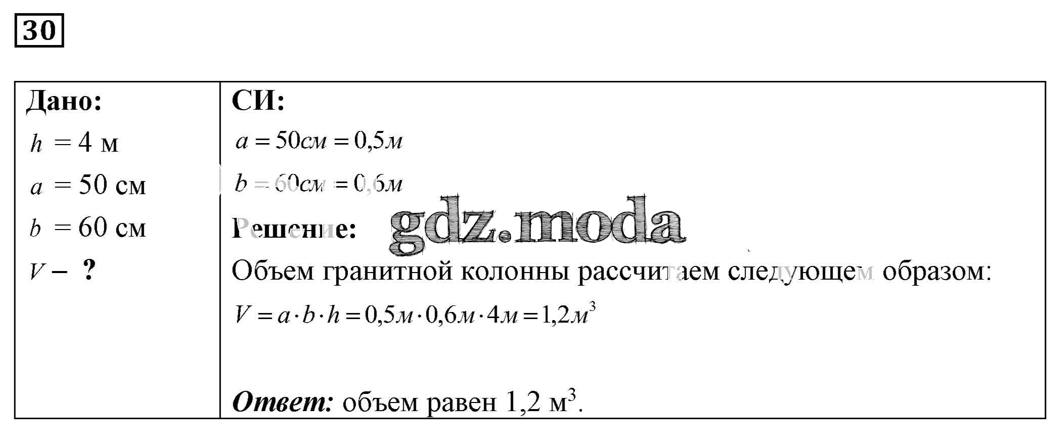 ГДЗ решение к заданию № 30 Физика 7-9 класс Сборник задач Лукашик В.И. Просвещение 2011 ФГОС бесплатно на гдз.мода!