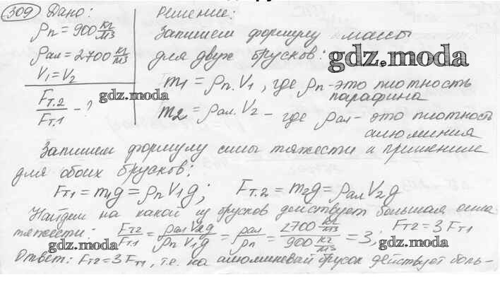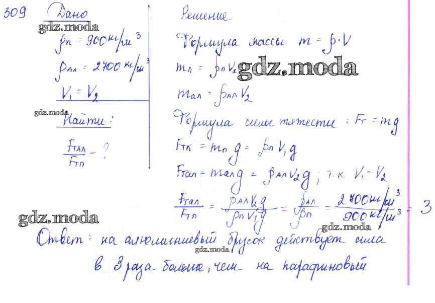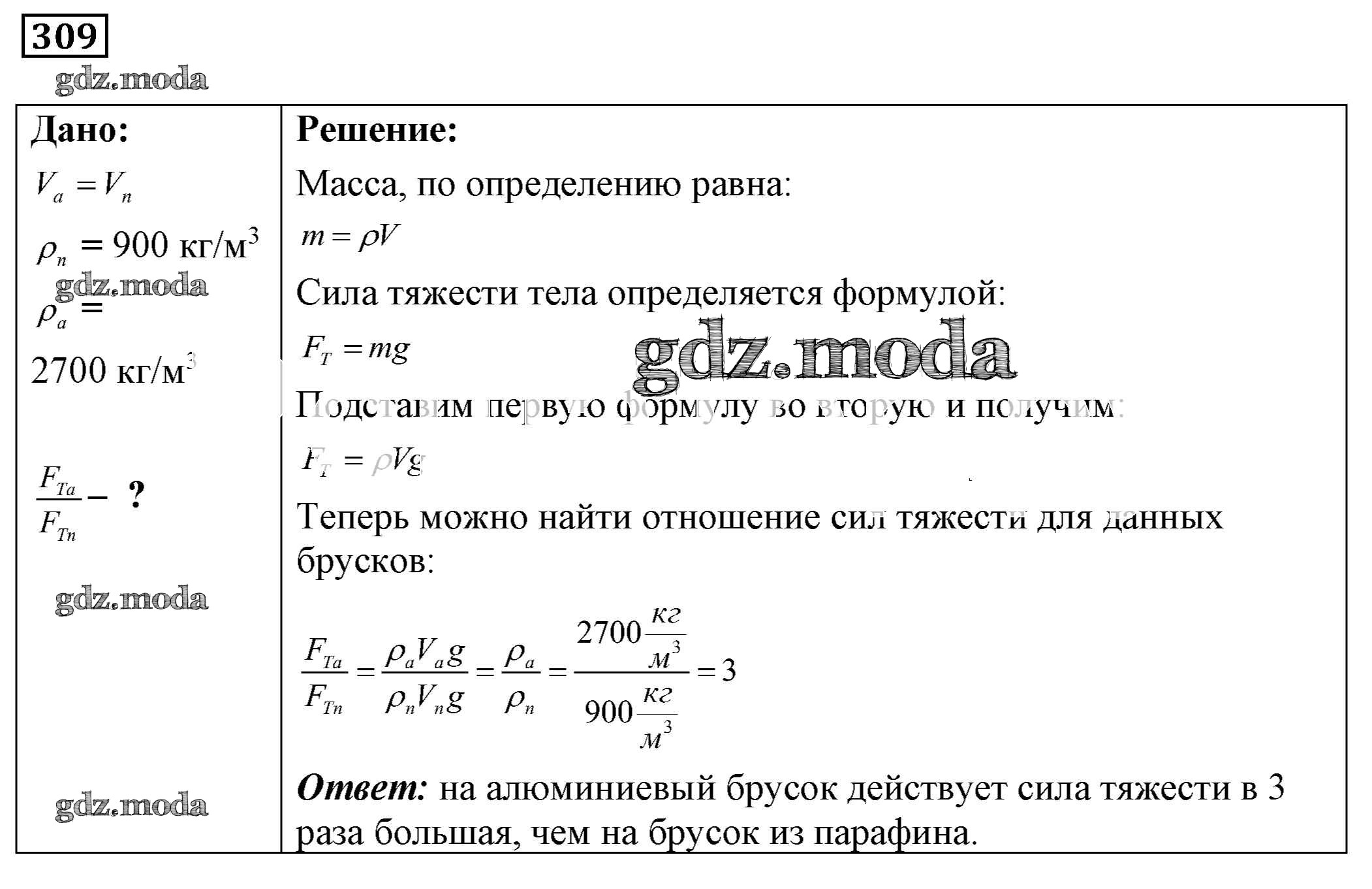 ОТВЕТ на задание № 309 Сборник задач по Физике 7-9 класс Лукашик