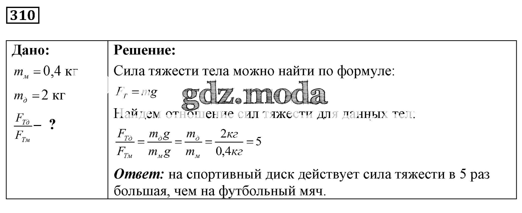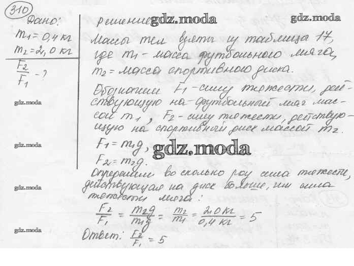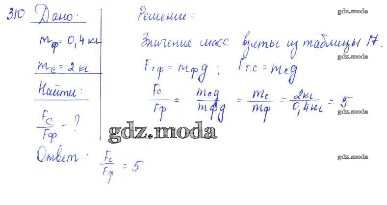 ОТВЕТ на задание № 310 Сборник задач по Физике 7-9 класс Лукашик