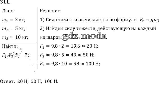 ОТВЕТ на задание № 311 Сборник задач по Физике 7-9 класс Лукашик