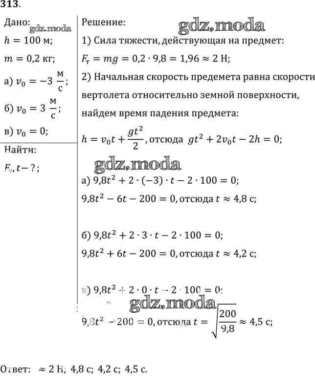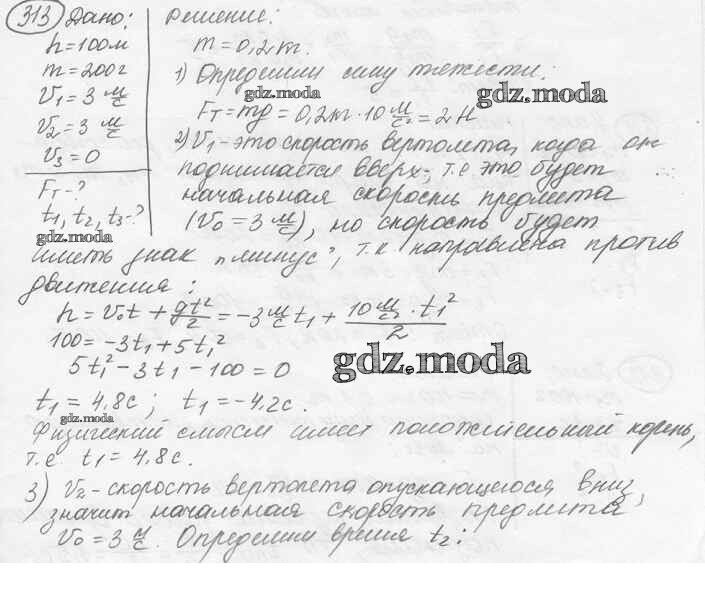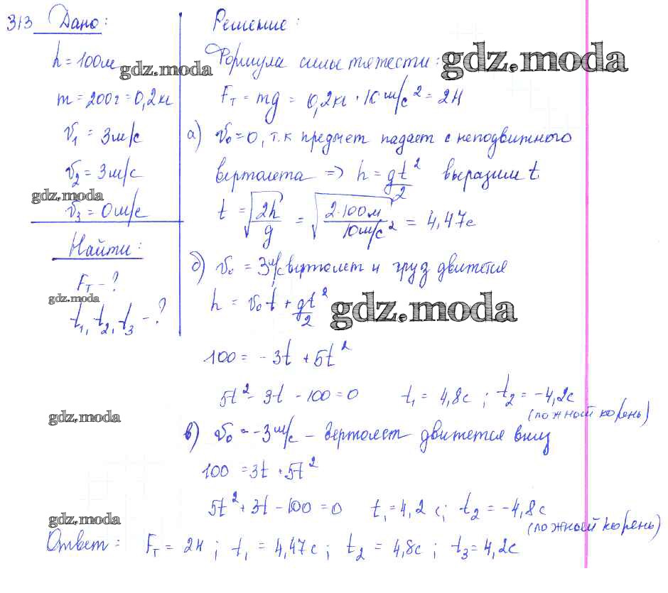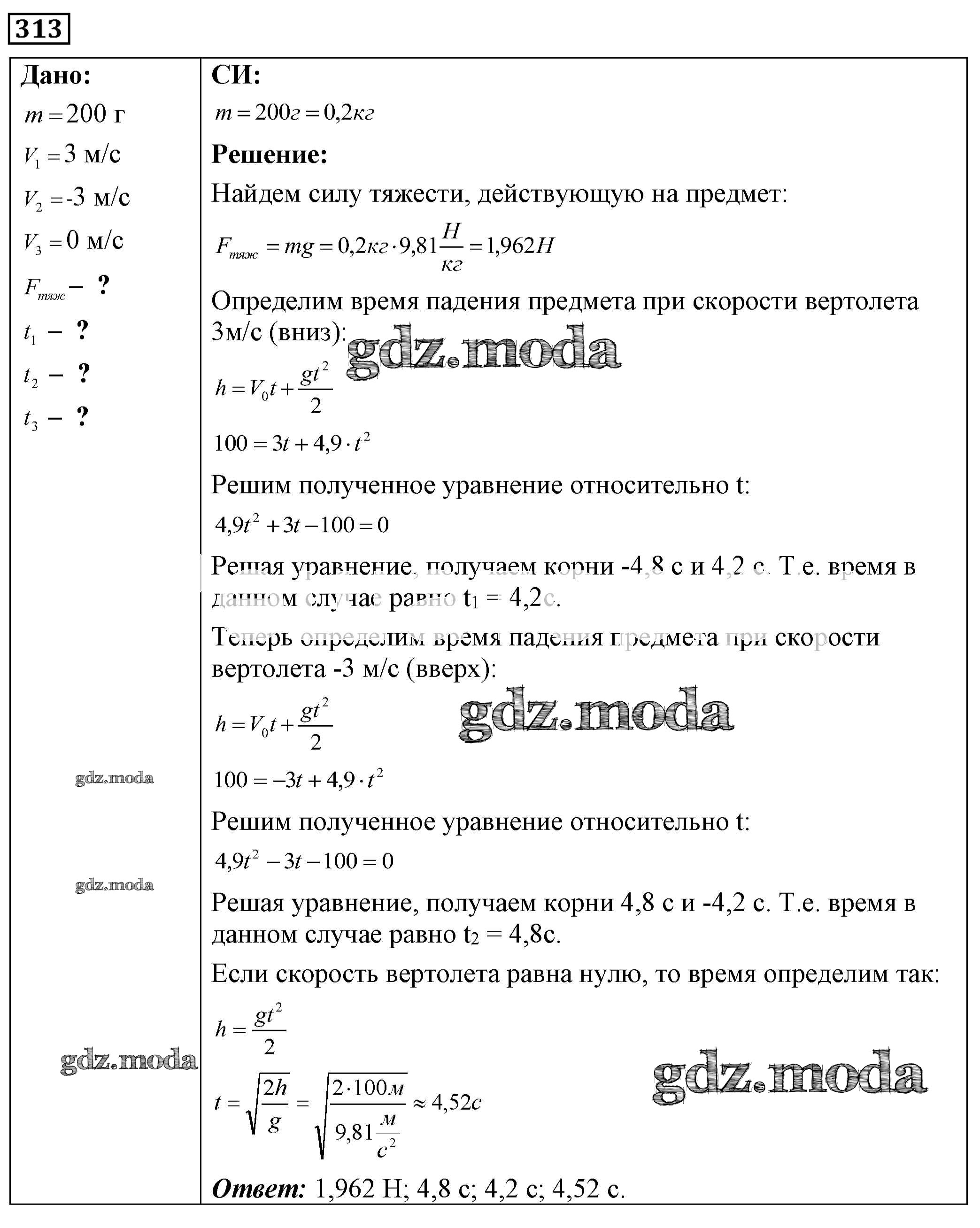ОТВЕТ на задание № 313 Сборник задач по Физике 7-9 класс Лукашик