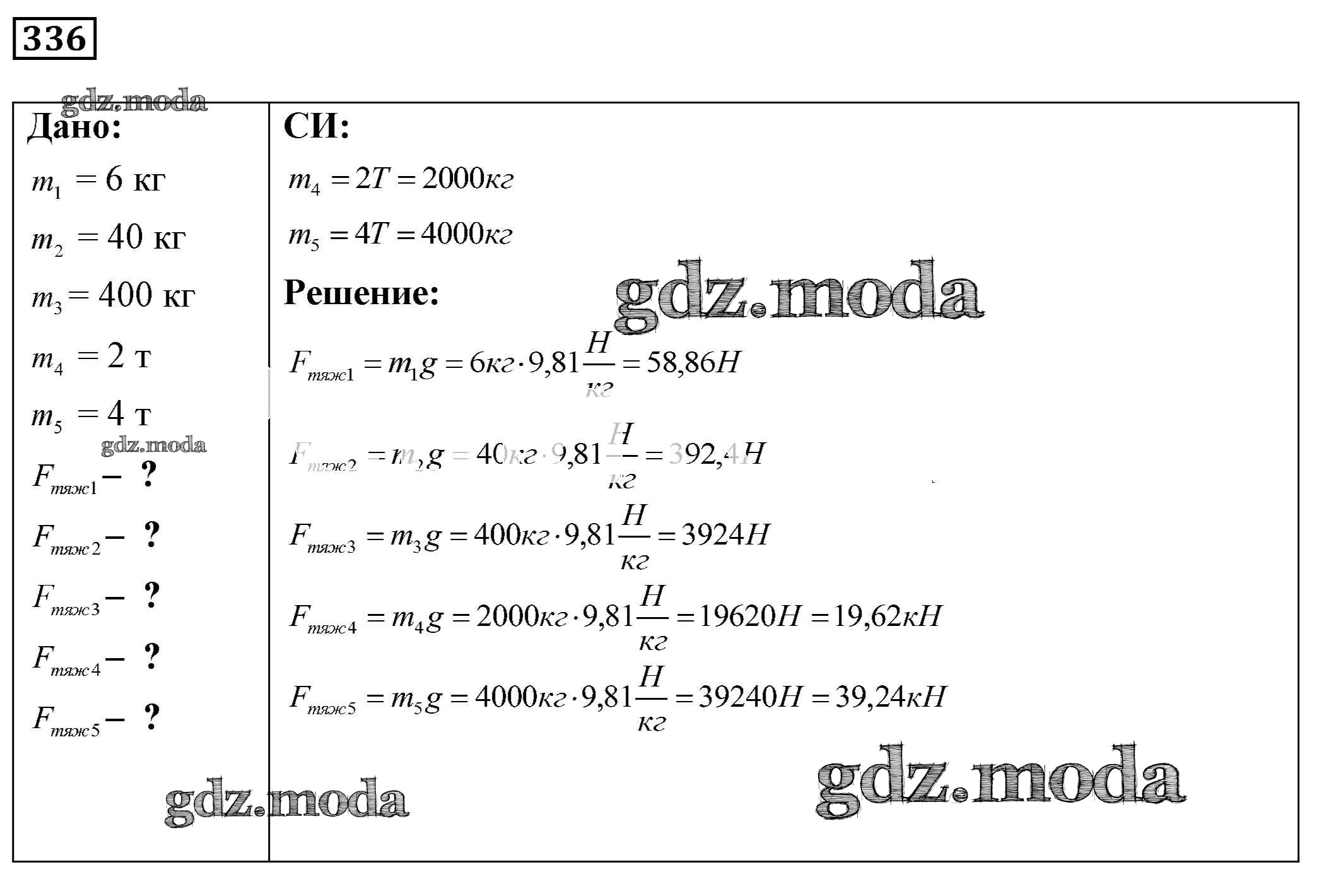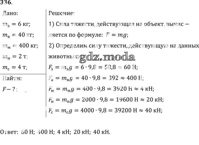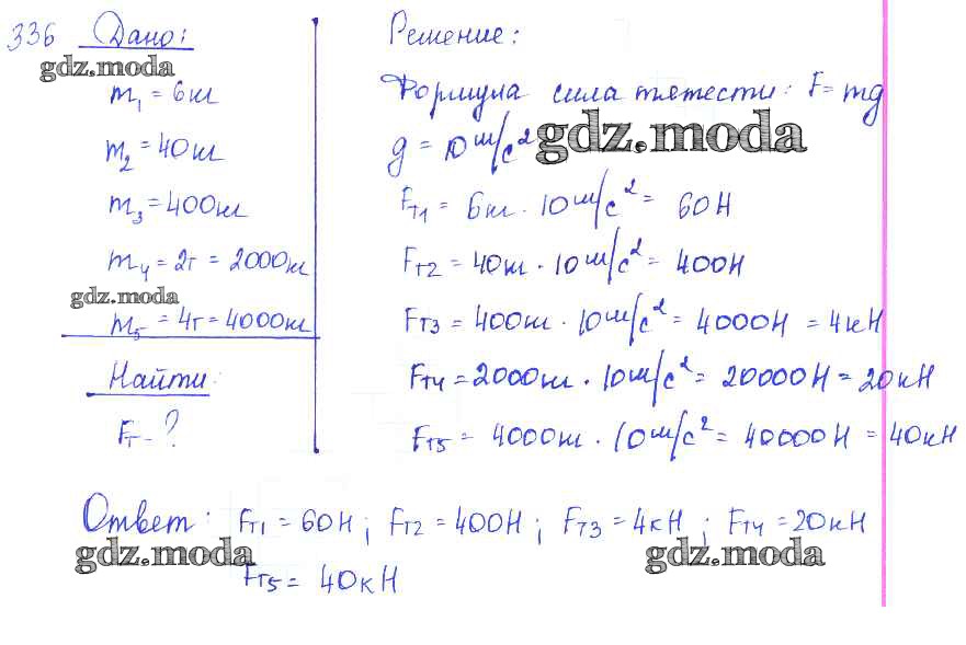 ОТВЕТ на задание № 336 Сборник задач по Физике 7-9 класс Лукашик