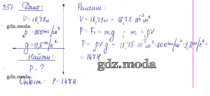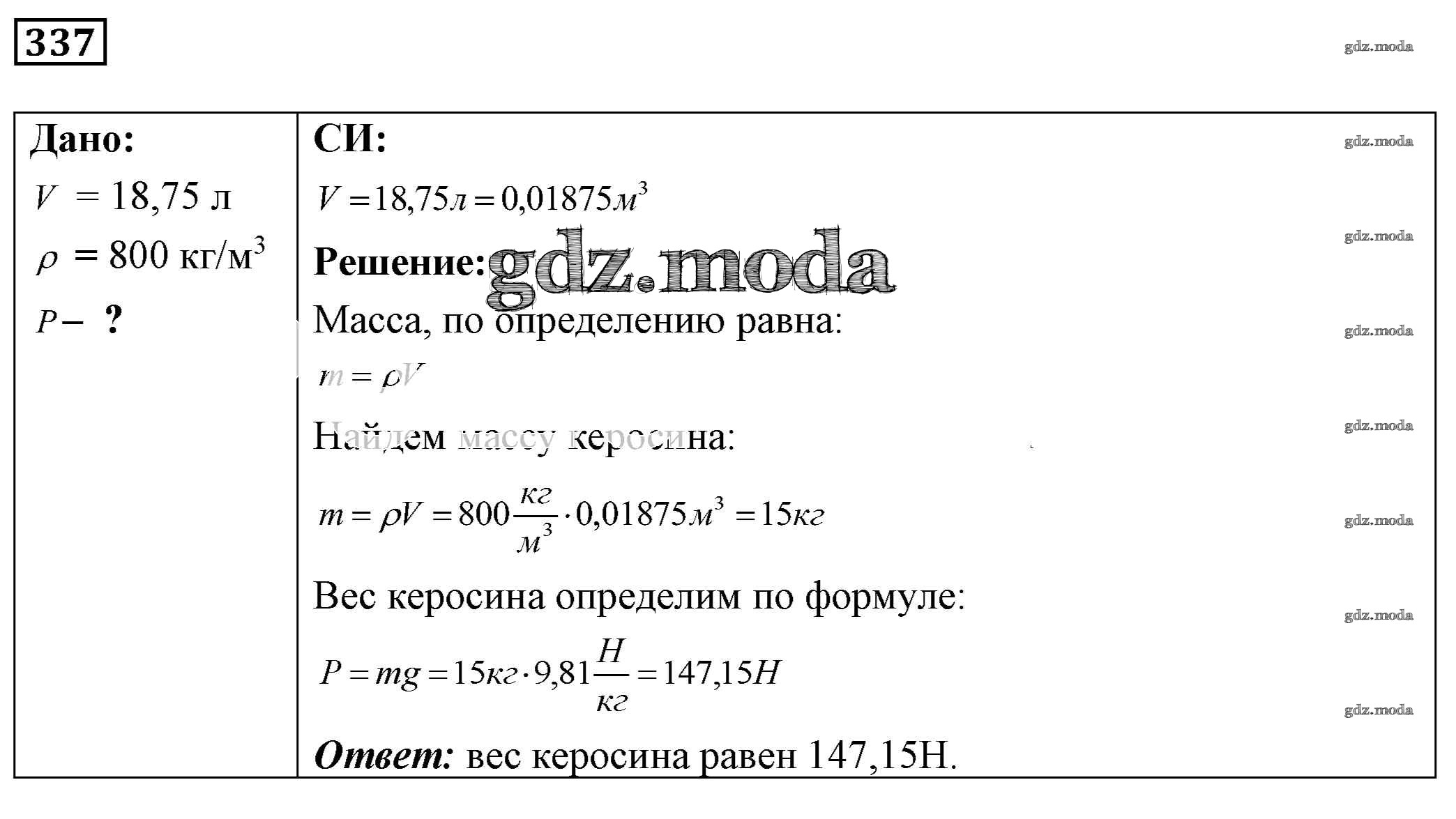ОТВЕТ на задание № 337 Сборник задач по Физике 7-9 класс Лукашик