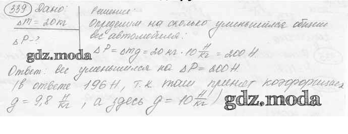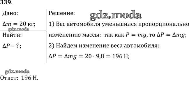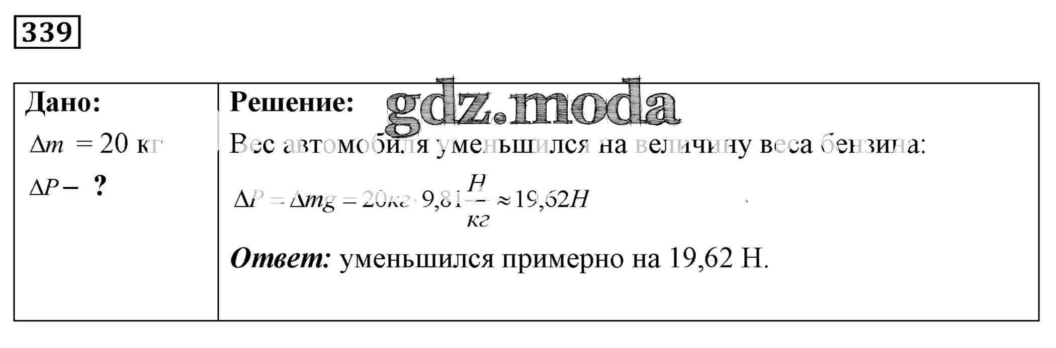 ОТВЕТ на задание № 339 Сборник задач по Физике 7-9 класс Лукашик