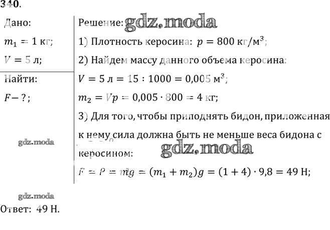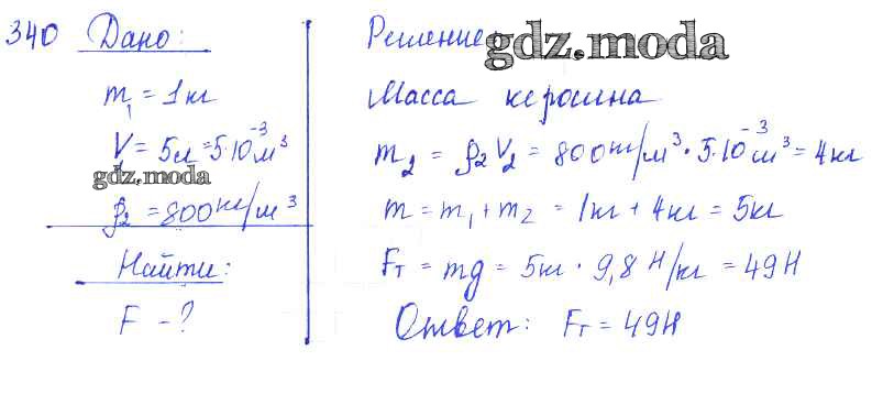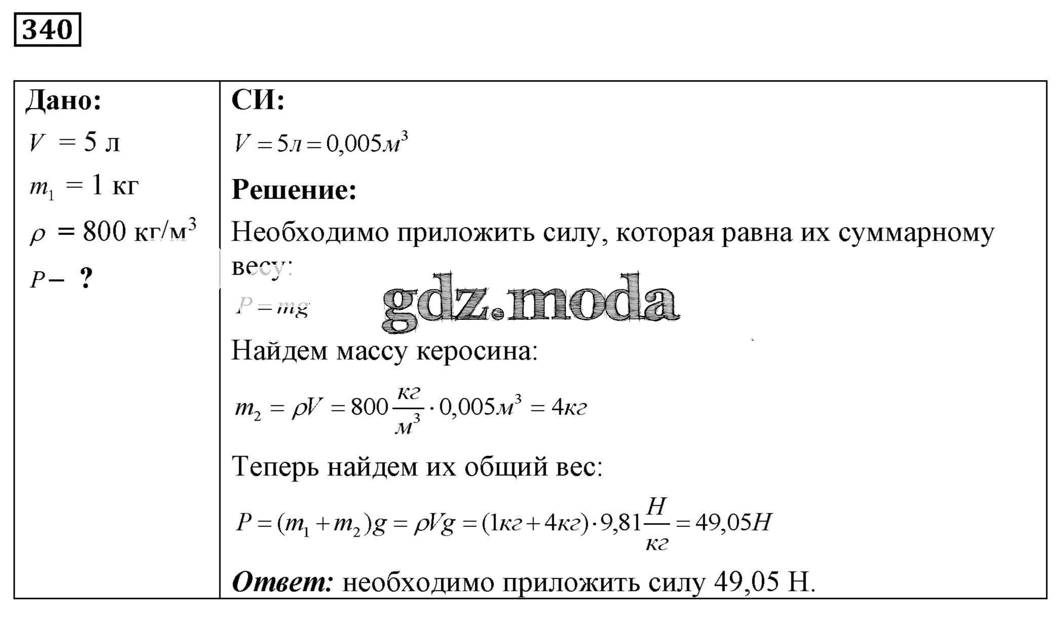 ОТВЕТ на задание № 340 Сборник задач по Физике 7-9 класс Лукашик