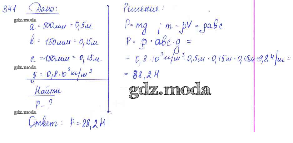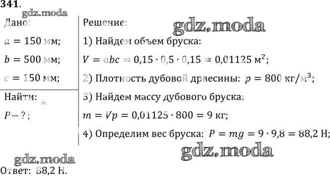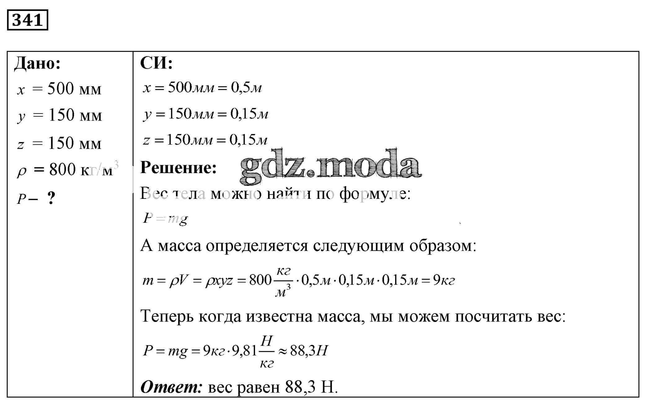 ОТВЕТ на задание № 341 Сборник задач по Физике 7-9 класс Лукашик