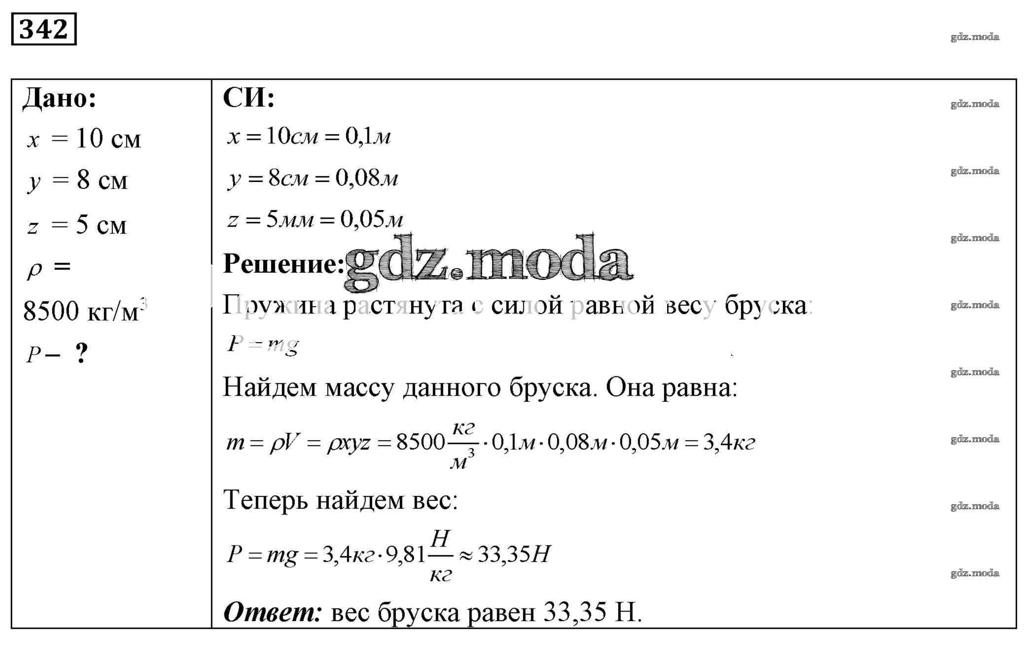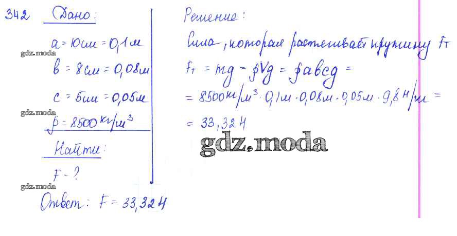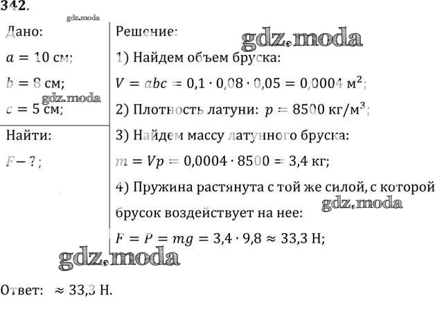 ОТВЕТ на задание № 342 Сборник задач по Физике 7-9 класс Лукашик