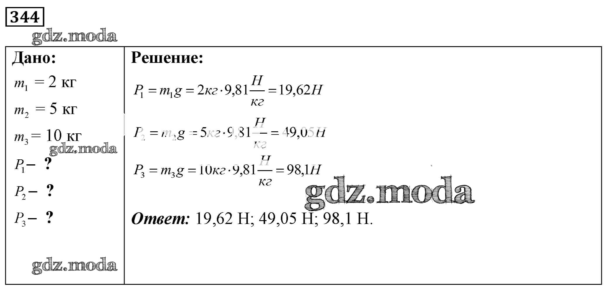 ОТВЕТ на задание № 344 Сборник задач по Физике 7-9 класс Лукашик