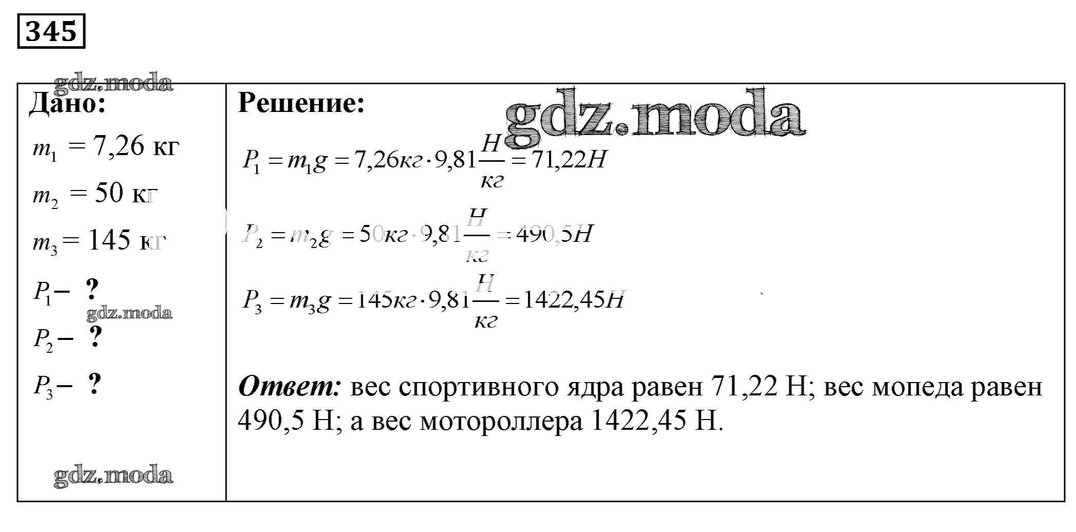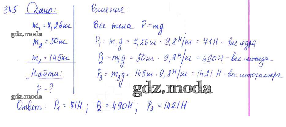 ОТВЕТ на задание № 345 Сборник задач по Физике 7-9 класс Лукашик