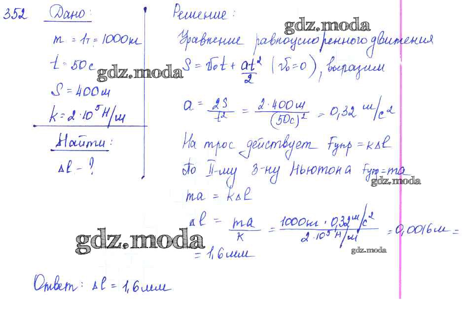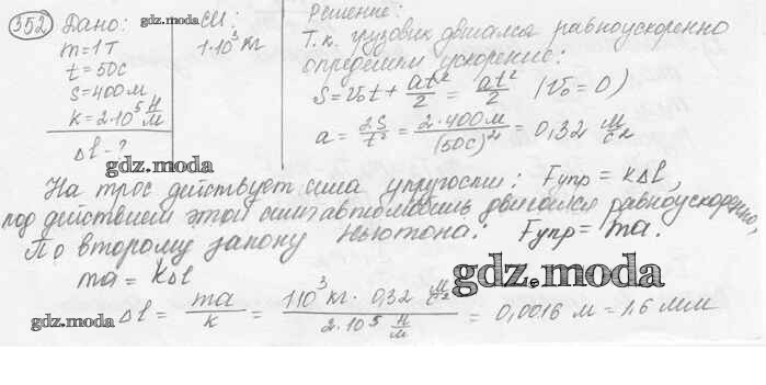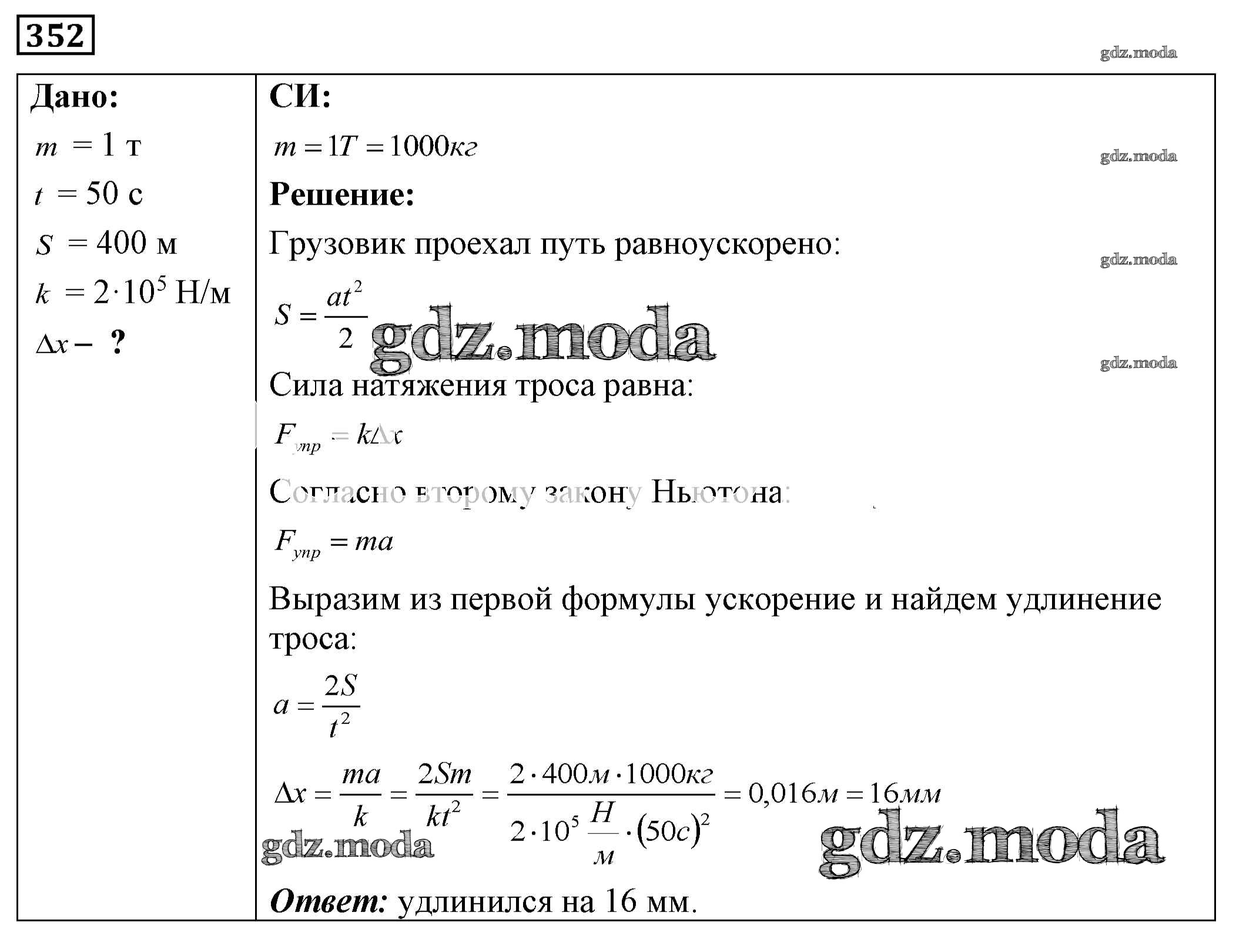 ОТВЕТ на задание № 352 Сборник задач по Физике 7-9 класс Лукашик