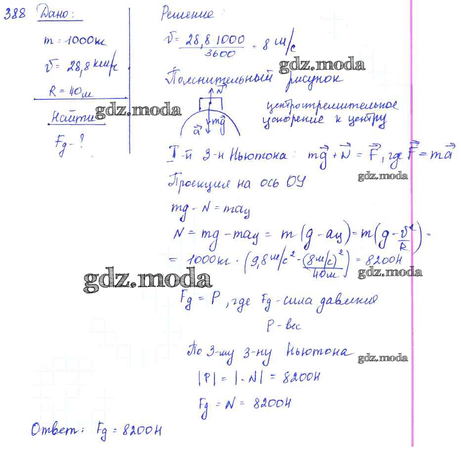 ОТВЕТ на задание № 388 Сборник задач по Физике 7-9 класс Лукашик