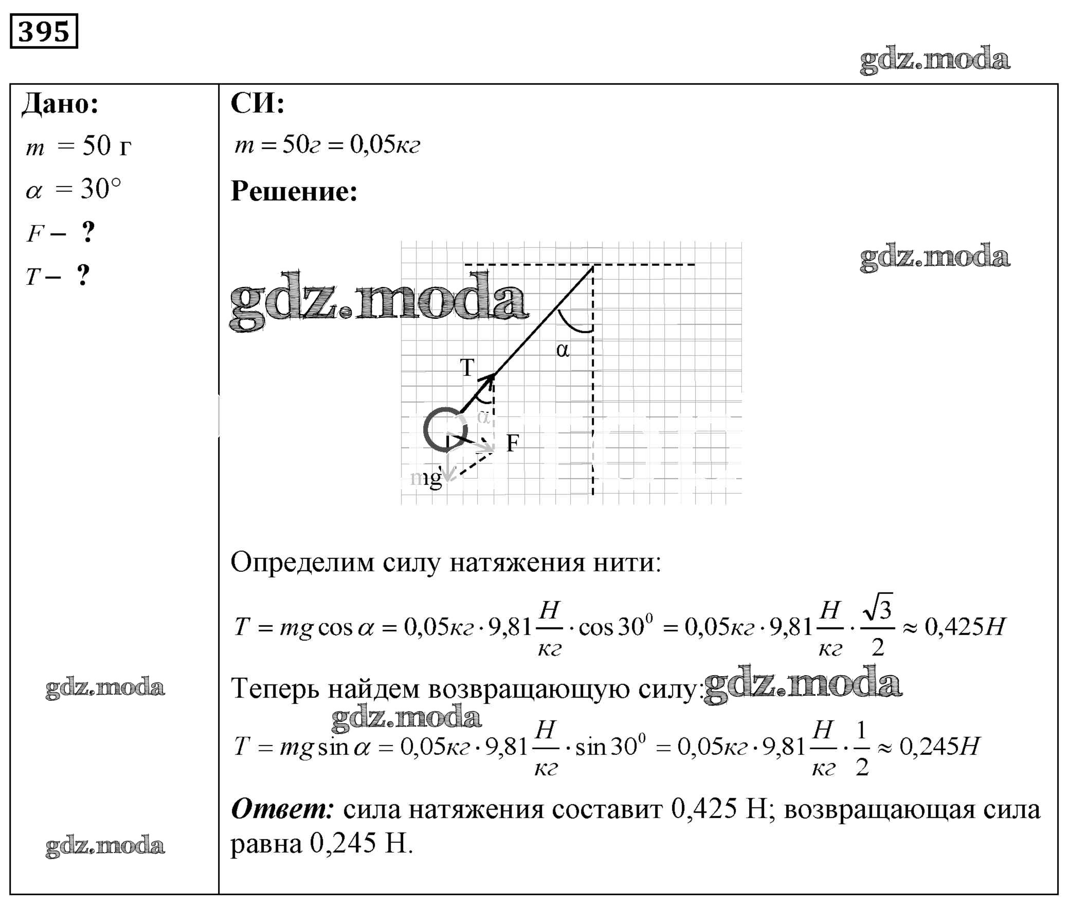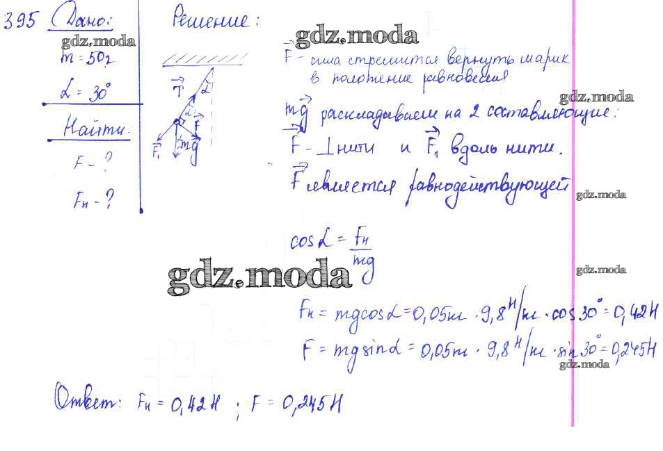 ОТВЕТ на задание № 395 Сборник задач по Физике 7-9 класс Лукашик
