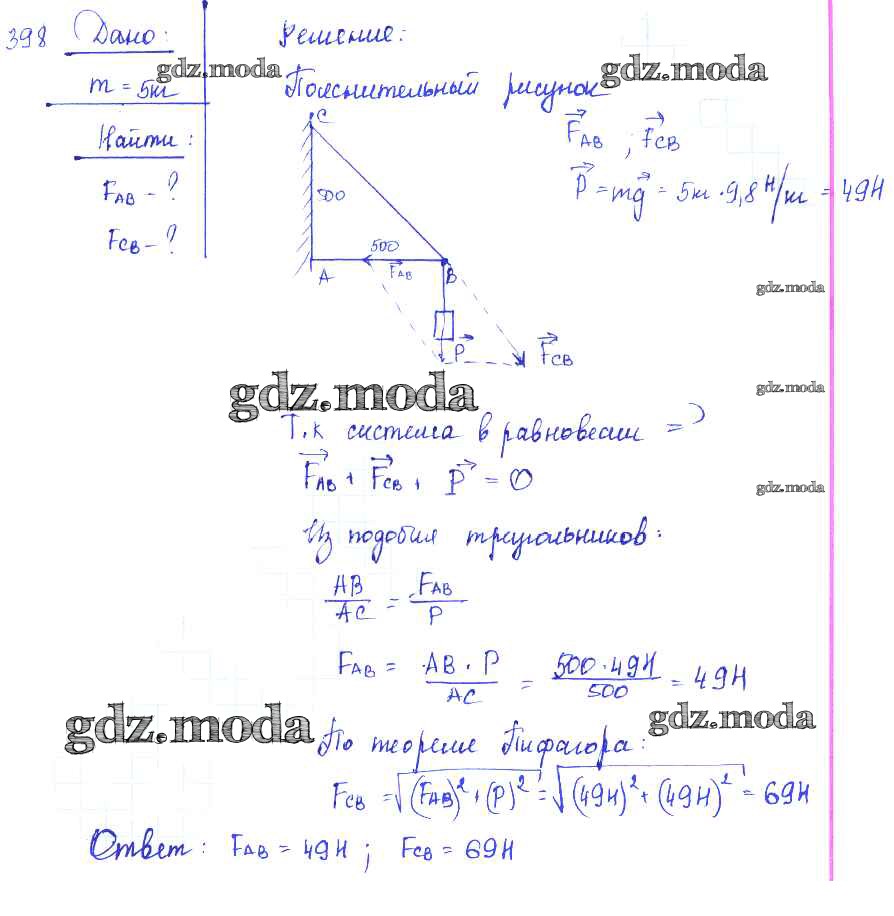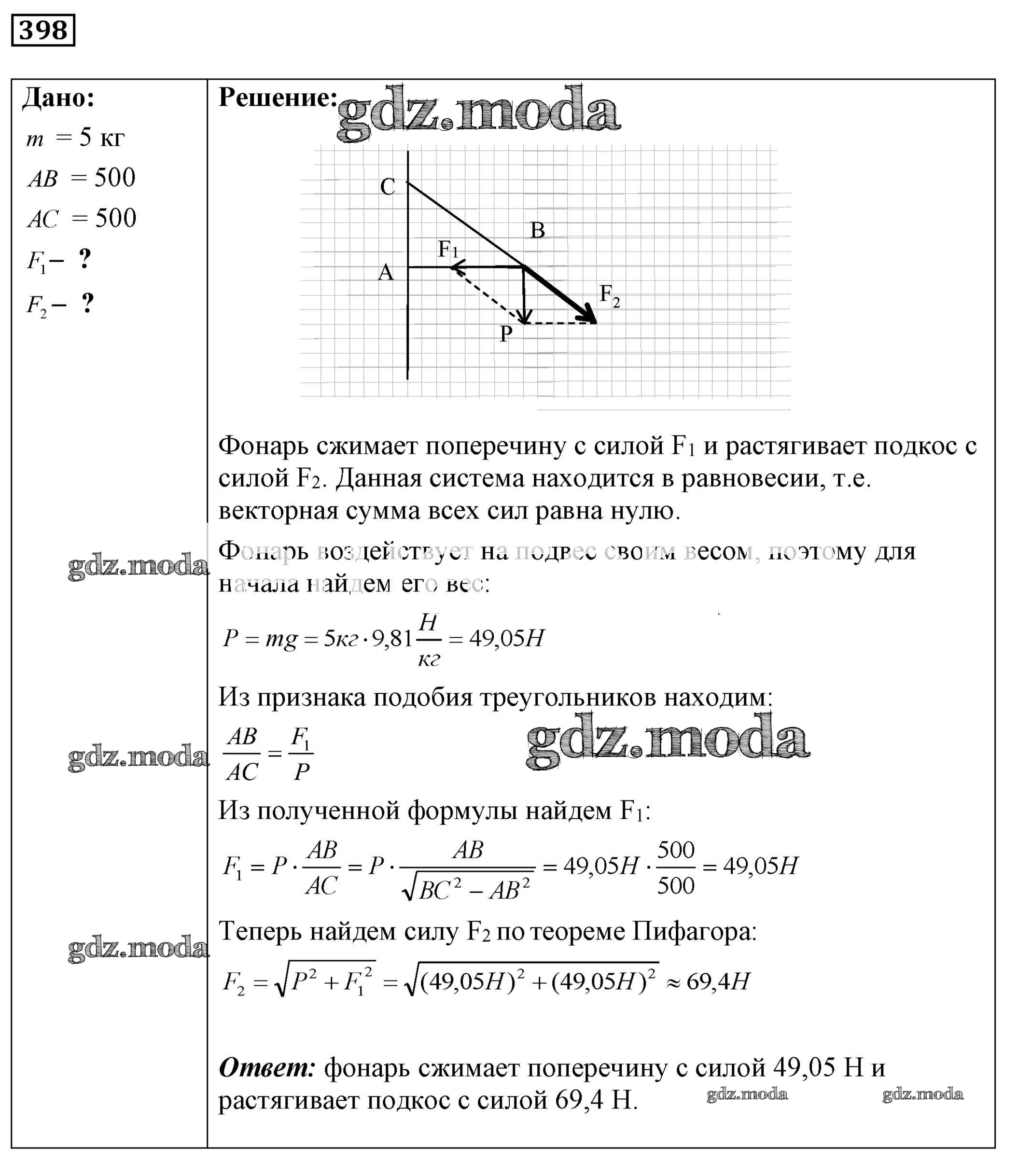 ОТВЕТ на задание № 398 Сборник задач по Физике 7-9 класс Лукашик