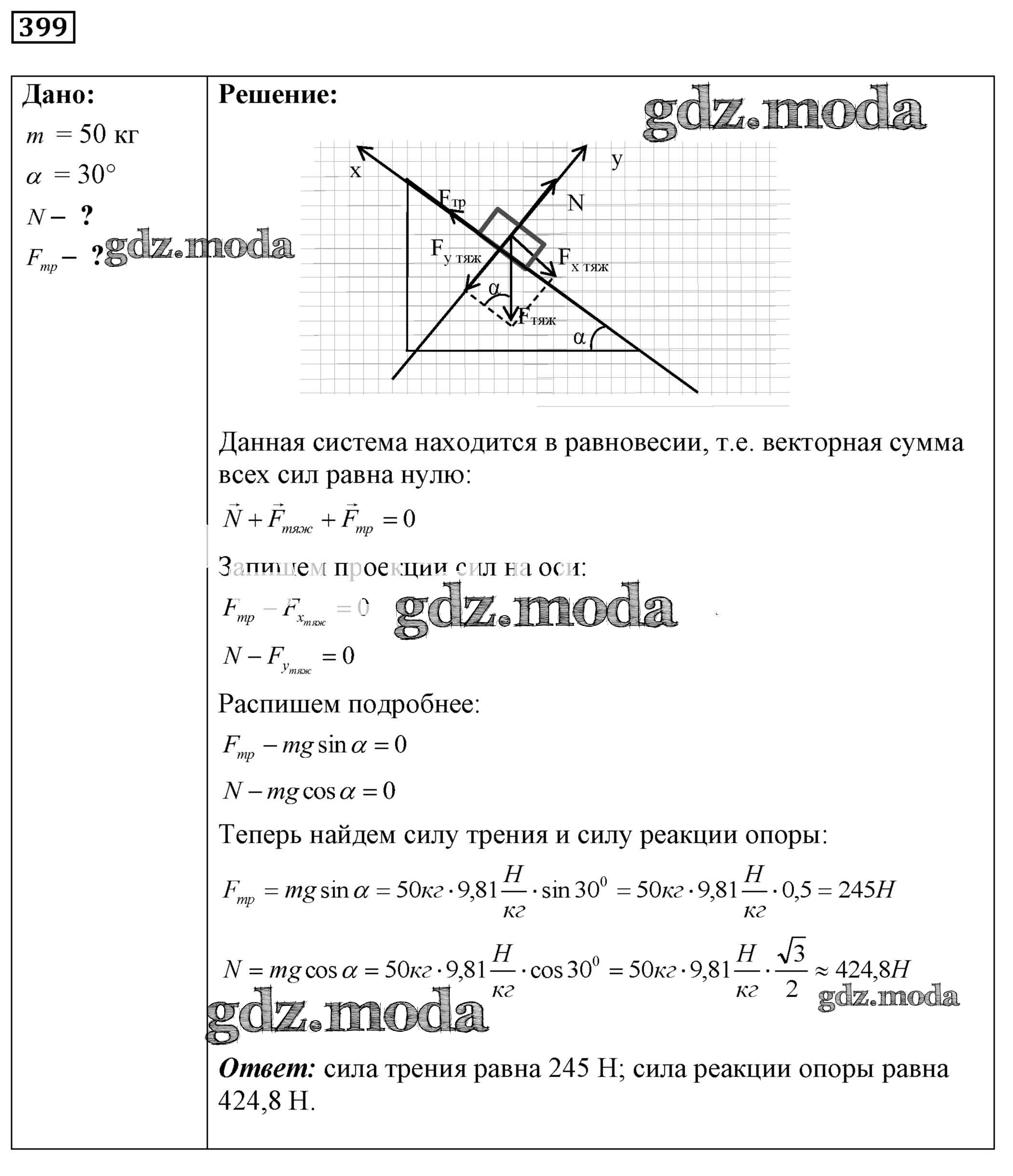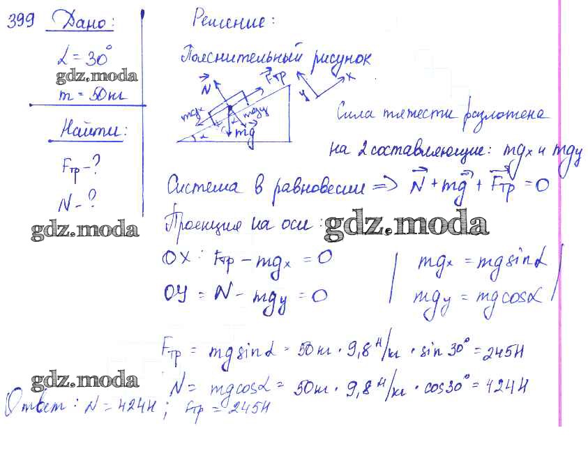 ОТВЕТ на задание № 399 Сборник задач по Физике 7-9 класс Лукашик
