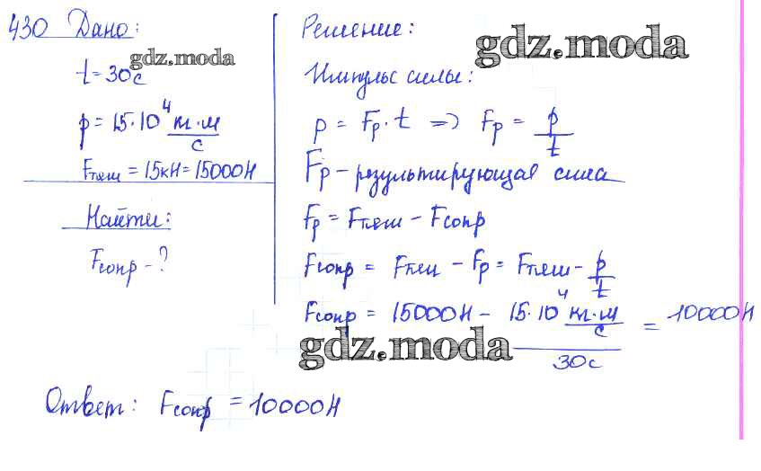ОТВЕТ на задание № 430 Сборник задач по Физике 7-9 класс Лукашик