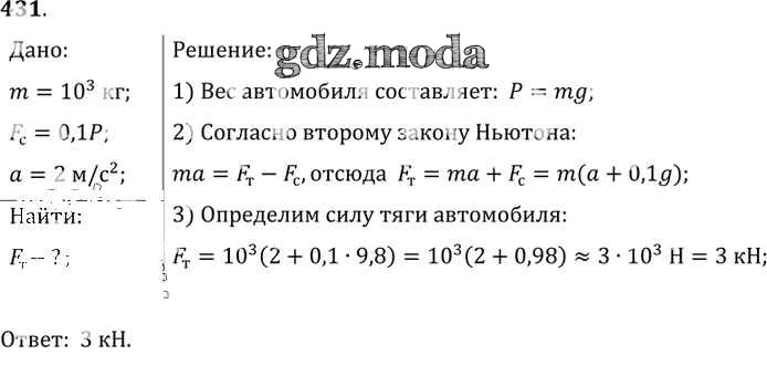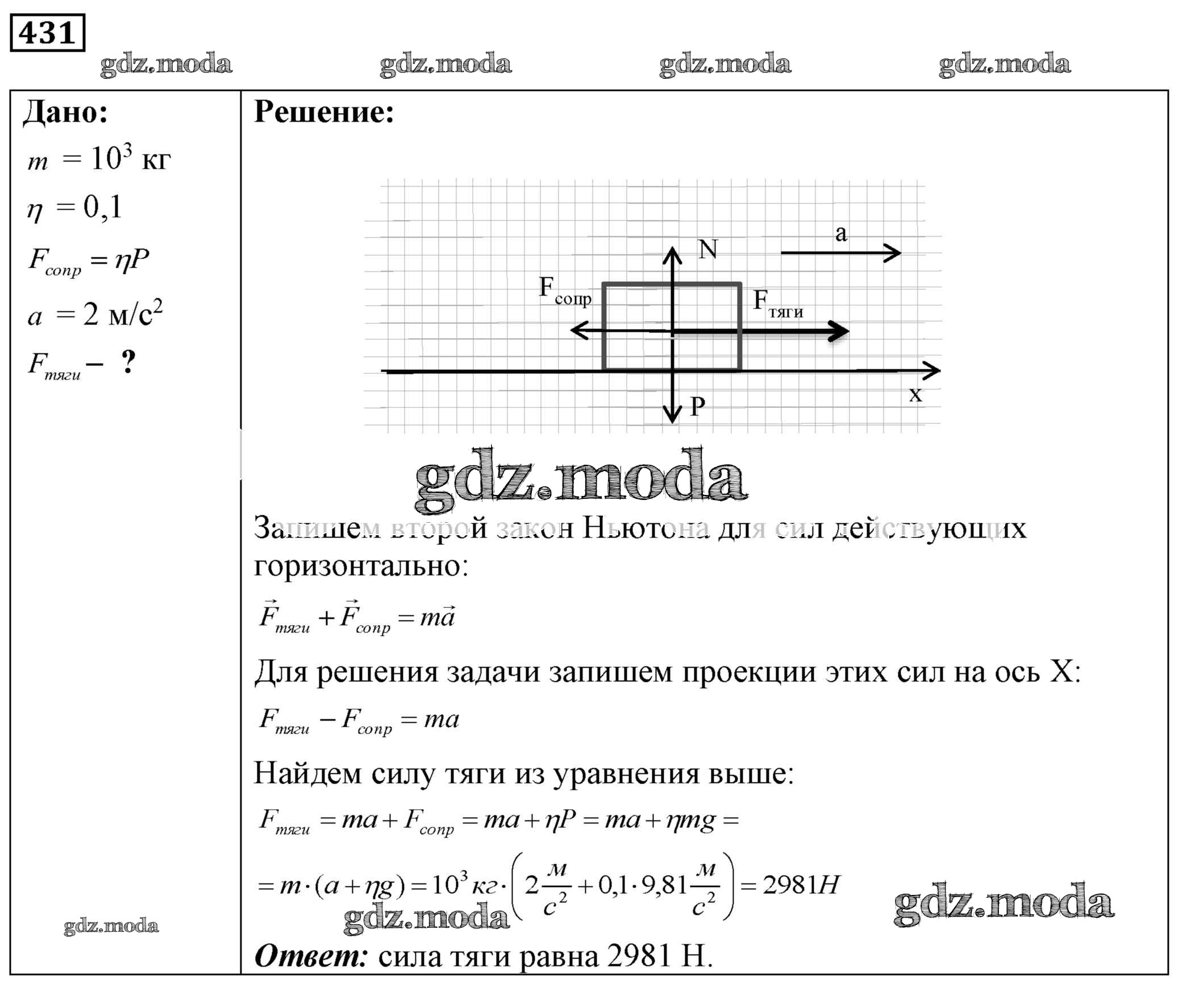 ОТВЕТ на задание № 431 Сборник задач по Физике 7-9 класс Лукашик