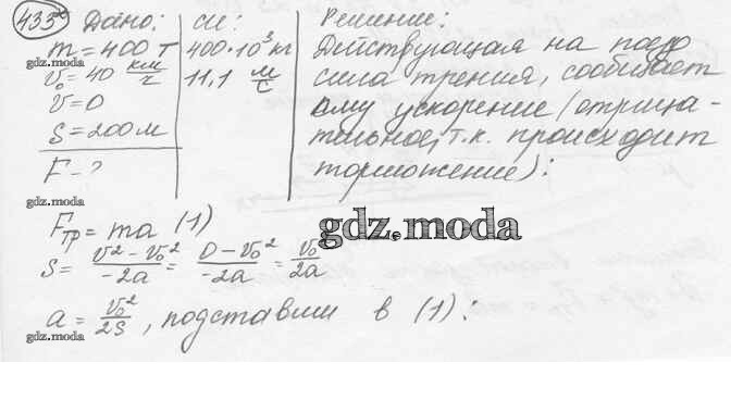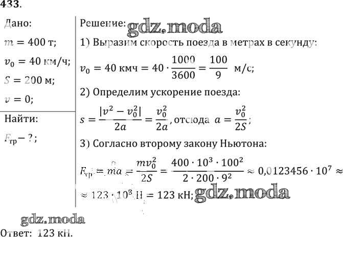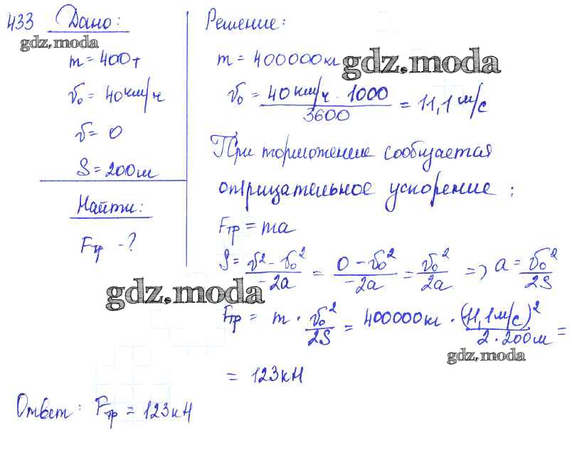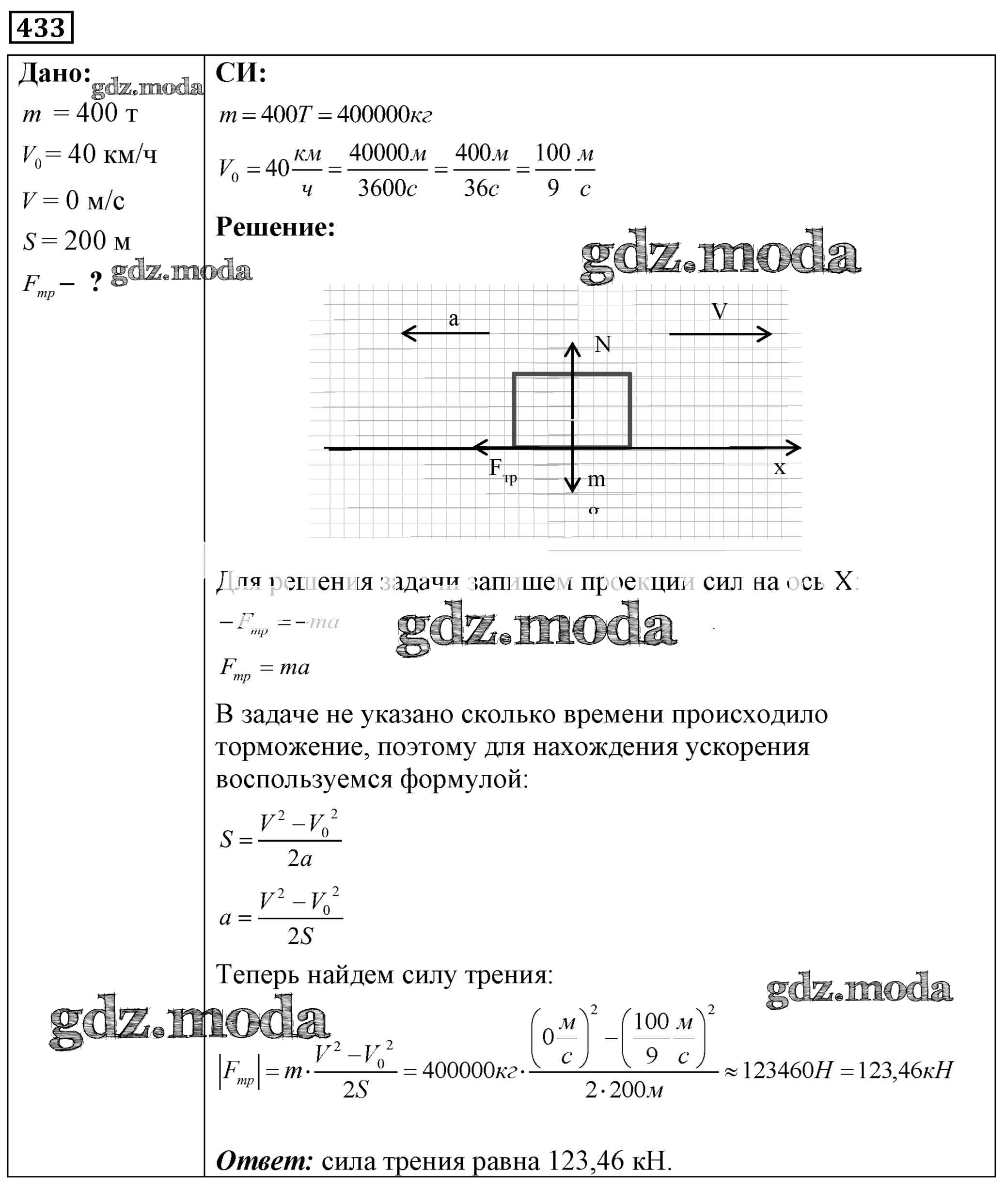 ОТВЕТ на задание № 433 Сборник задач по Физике 7-9 класс Лукашик