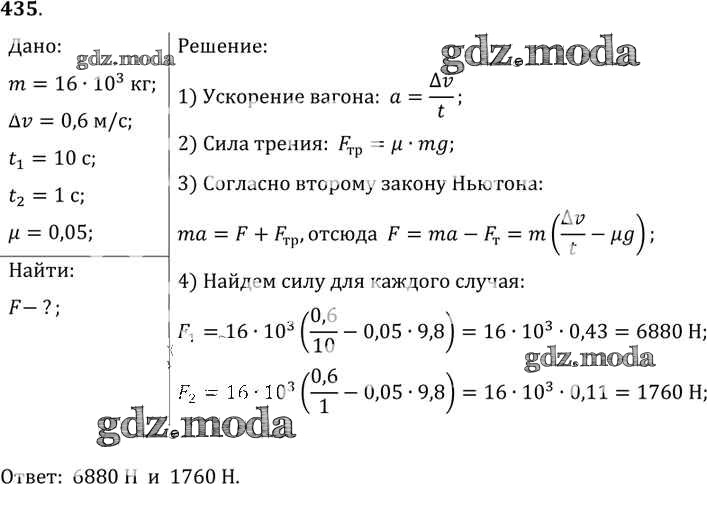 ОТВЕТ на задание № 435 Сборник задач по Физике 7-9 класс Лукашик