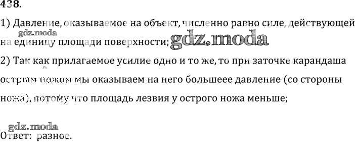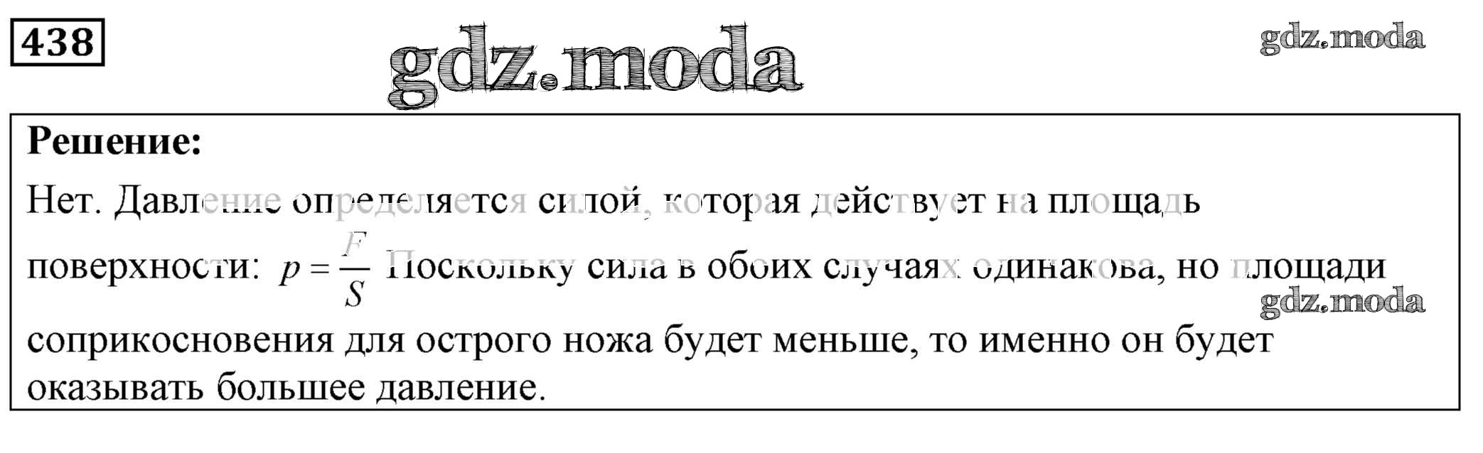 ОТВЕТ на задание № 438 Сборник задач по Физике 7-9 класс Лукашик