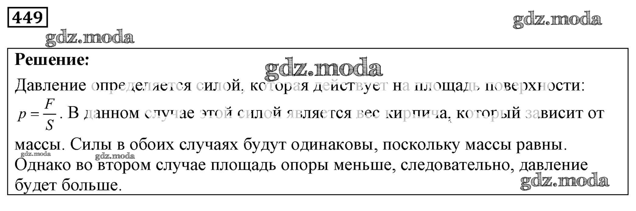 ОТВЕТ на задание № 449 Сборник задач по Физике 7-9 класс Лукашик