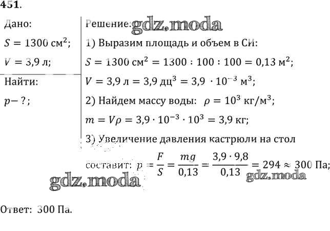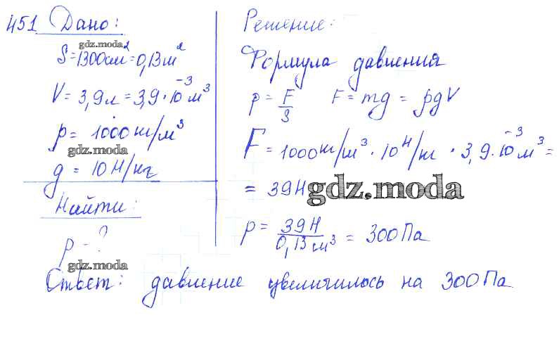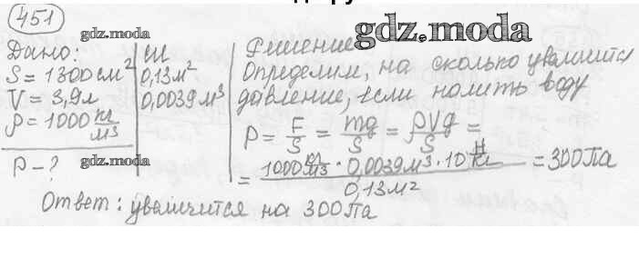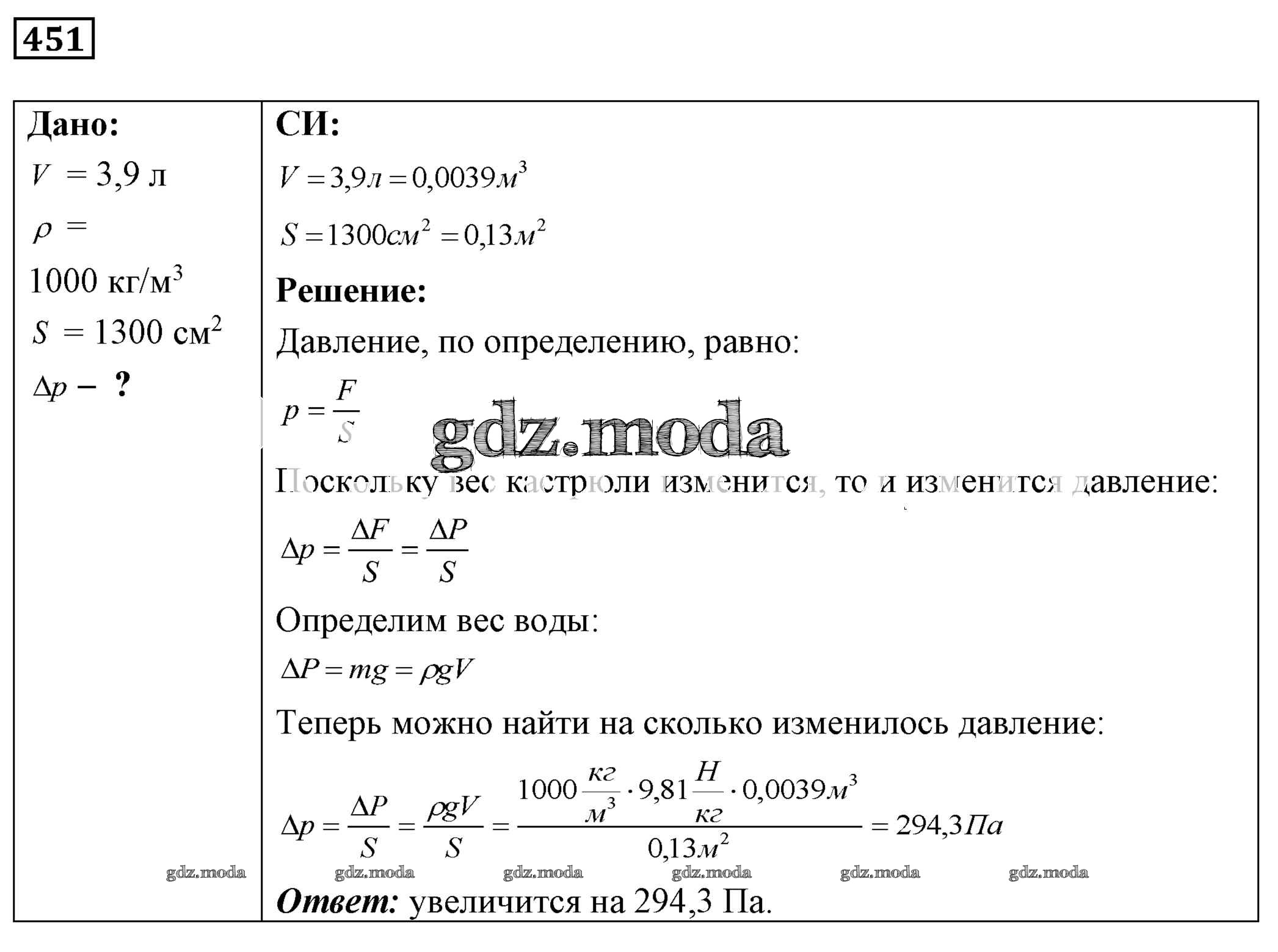 ОТВЕТ на задание № 451 Сборник задач по Физике 7-9 класс Лукашик