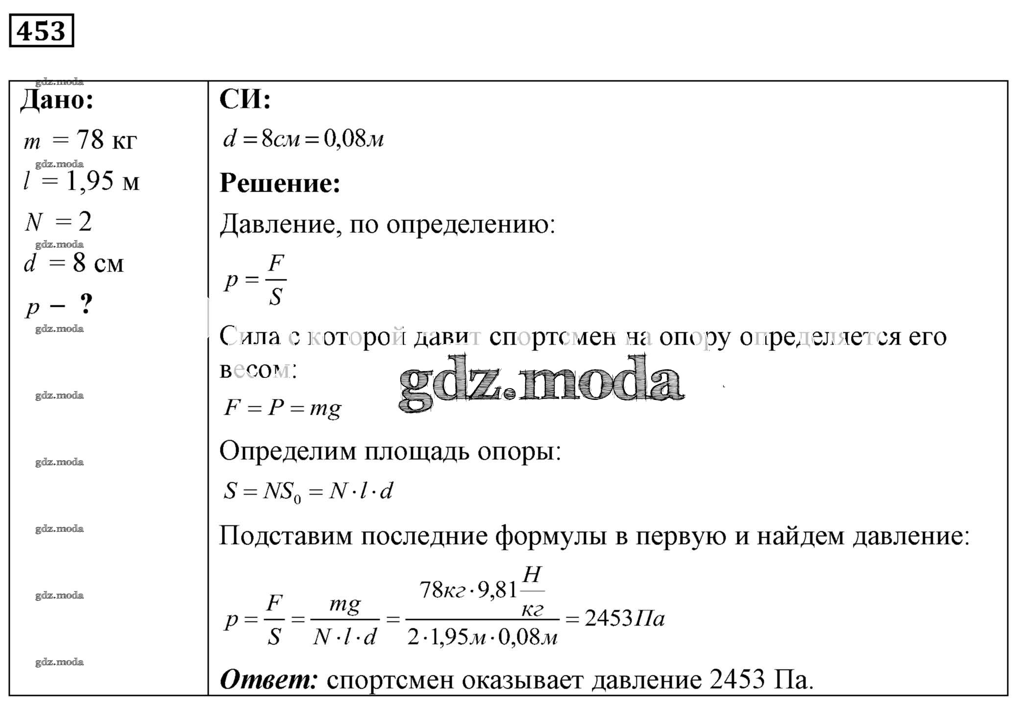 ОТВЕТ на задание № 453 Сборник задач по Физике 7-9 класс Лукашик