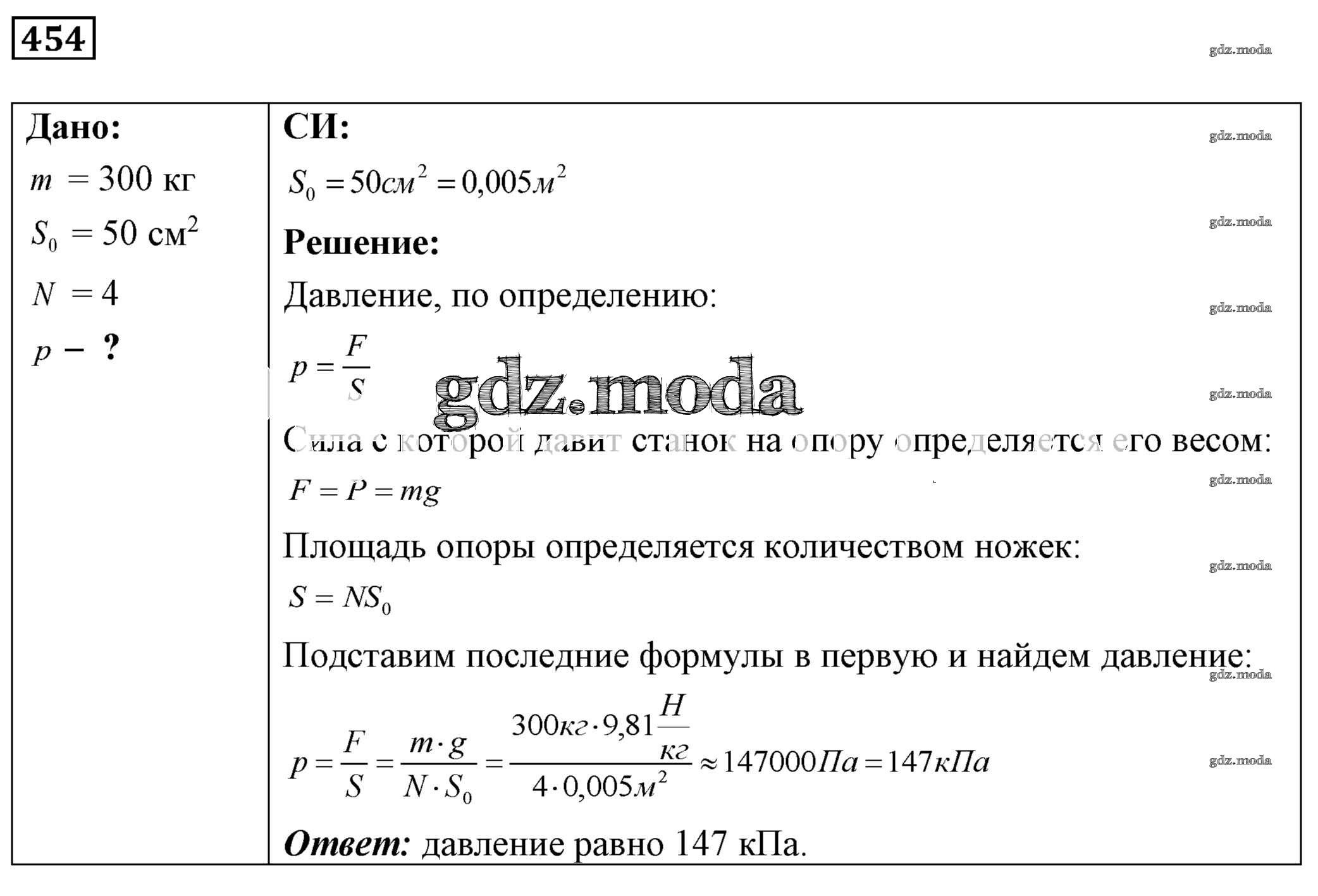 ОТВЕТ на задание № 454 Сборник задач по Физике 7-9 класс Лукашик