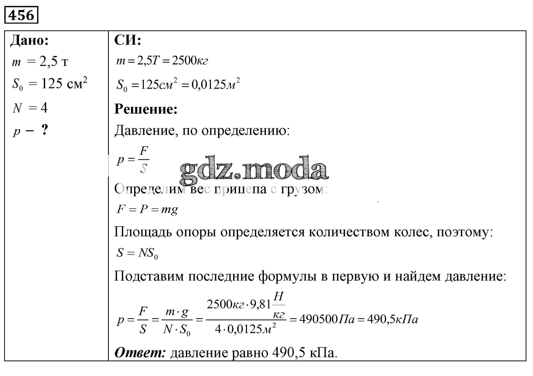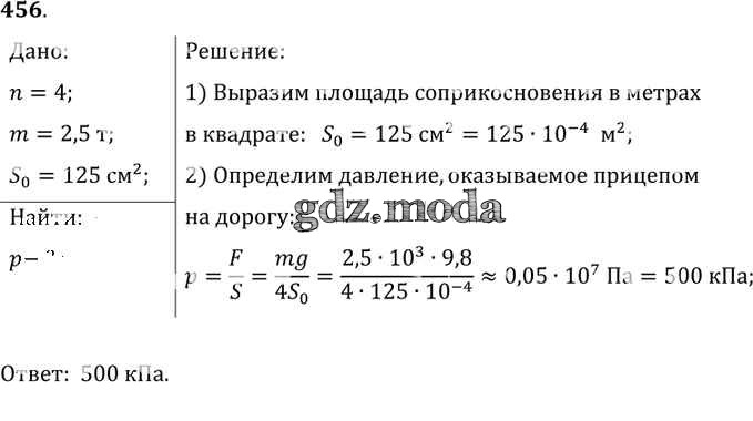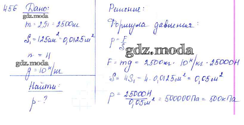 ОТВЕТ на задание № 456 Сборник задач по Физике 7-9 класс Лукашик