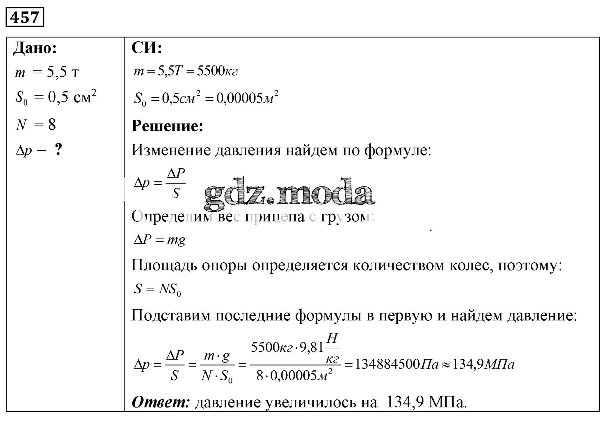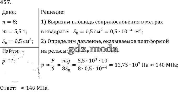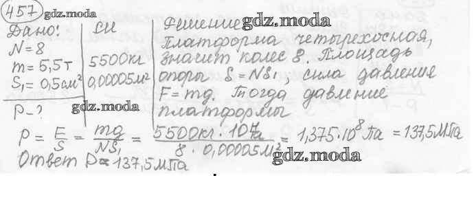 ОТВЕТ на задание № 457 Сборник задач по Физике 7-9 класс Лукашик