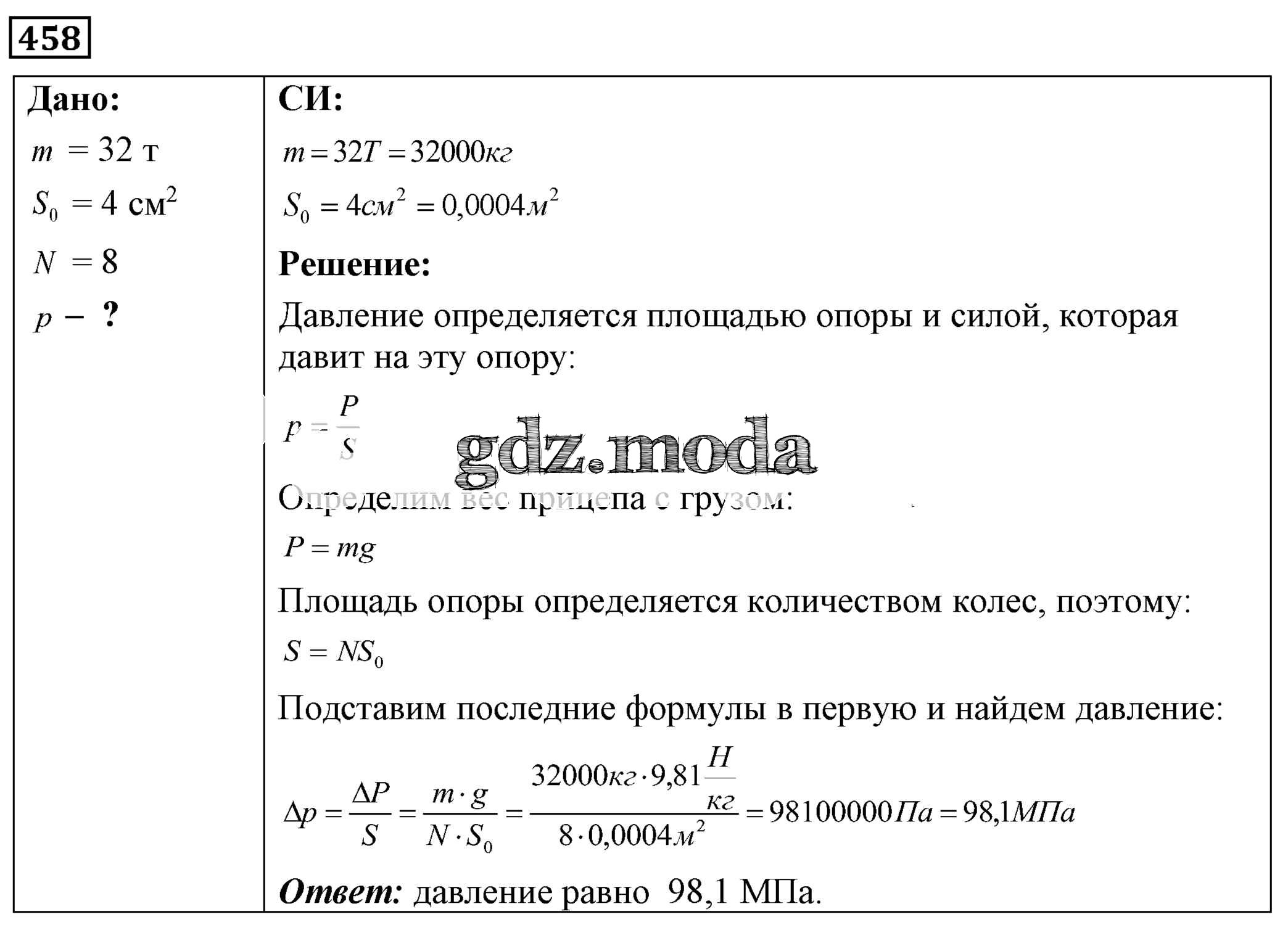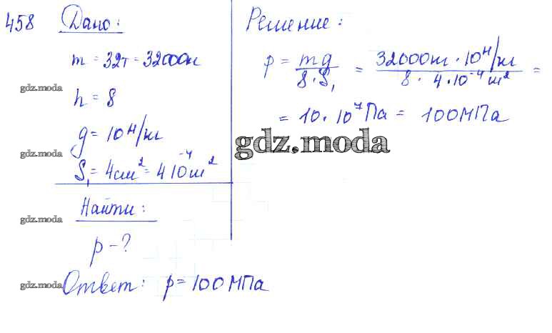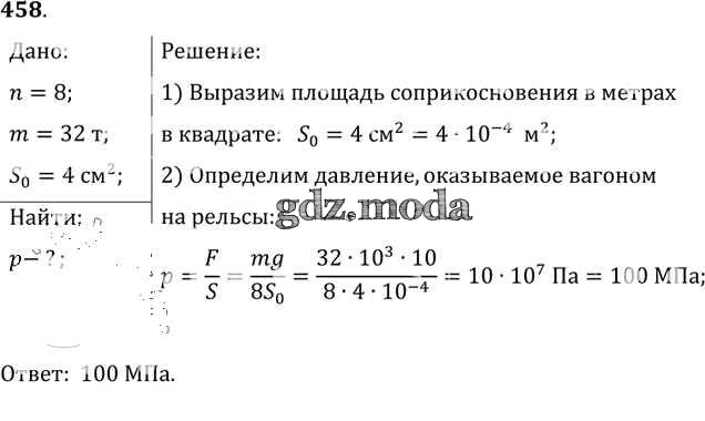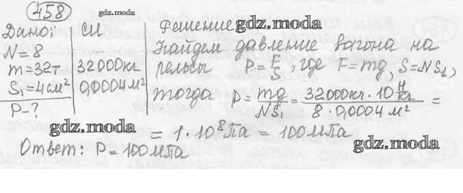 ОТВЕТ на задание № 458 Сборник задач по Физике 7-9 класс Лукашик