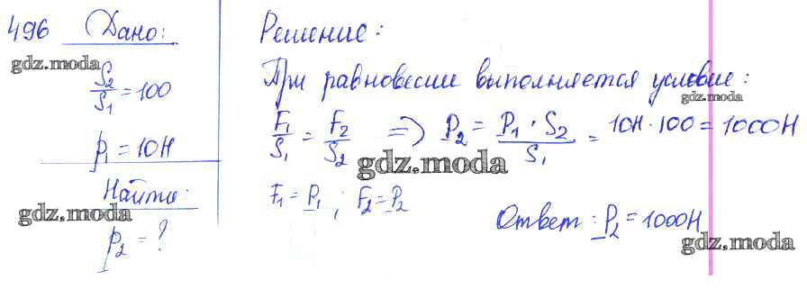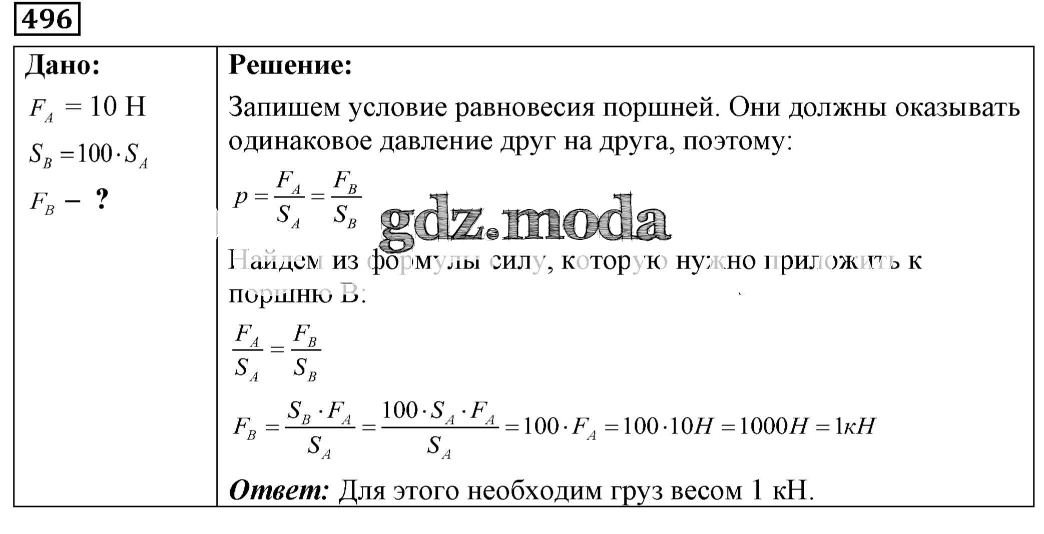 ОТВЕТ на задание № 496 Сборник задач по Физике 7-9 класс Лукашик