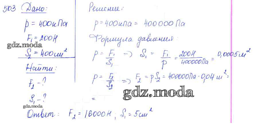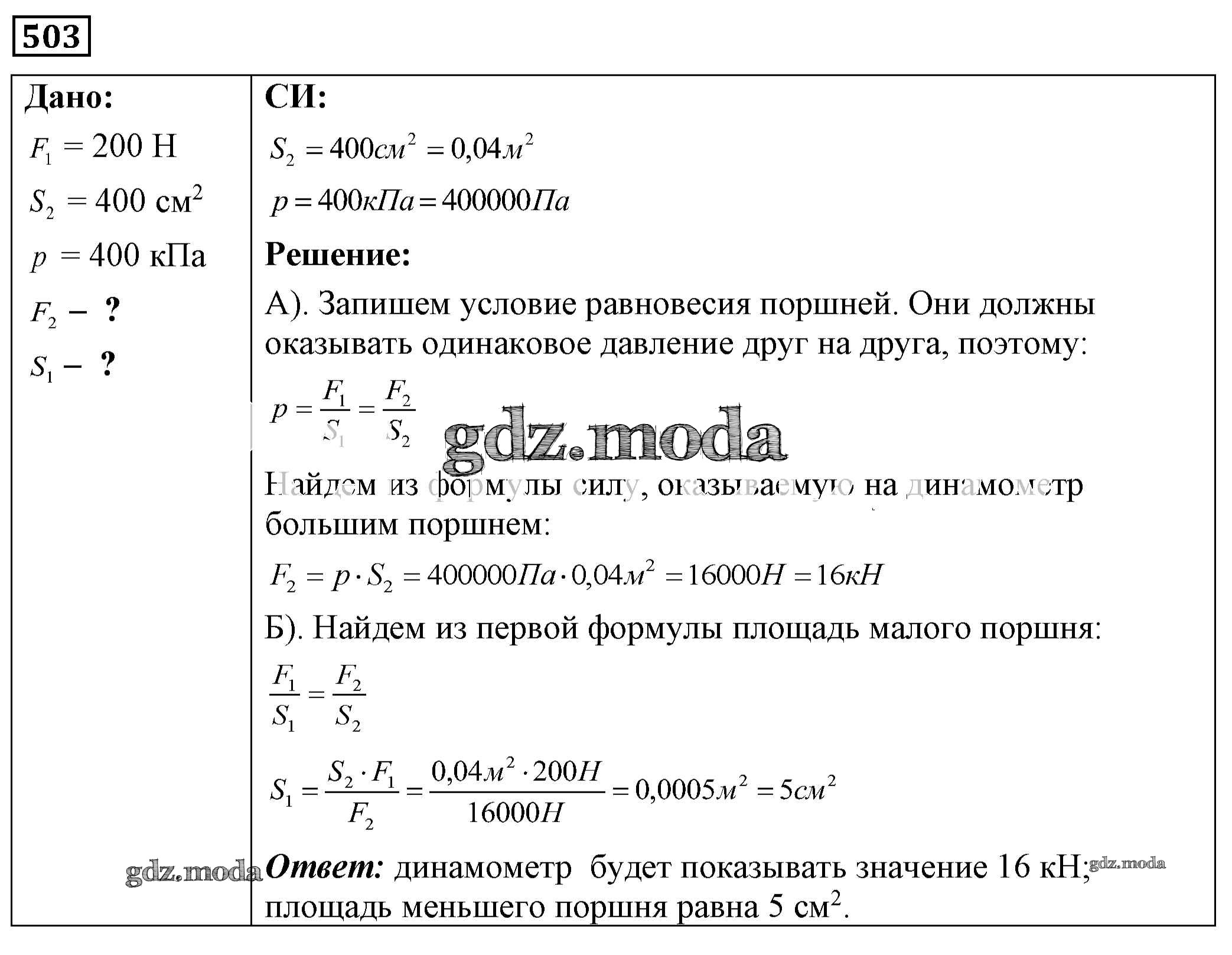 ОТВЕТ на задание № 503 Сборник задач по Физике 7-9 класс Лукашик