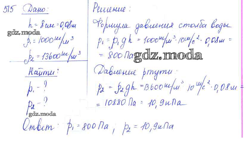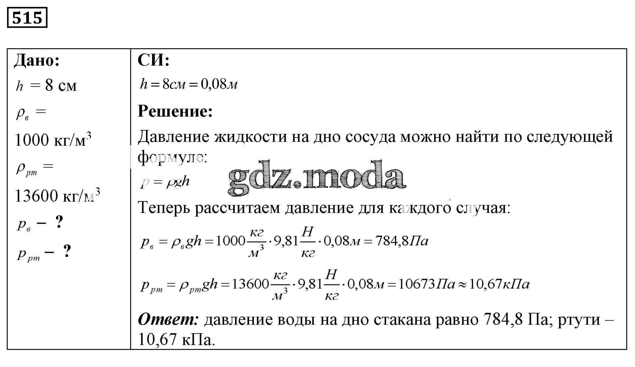 ОТВЕТ на задание № 515 Сборник задач по Физике 7-9 класс Лукашик