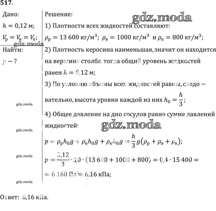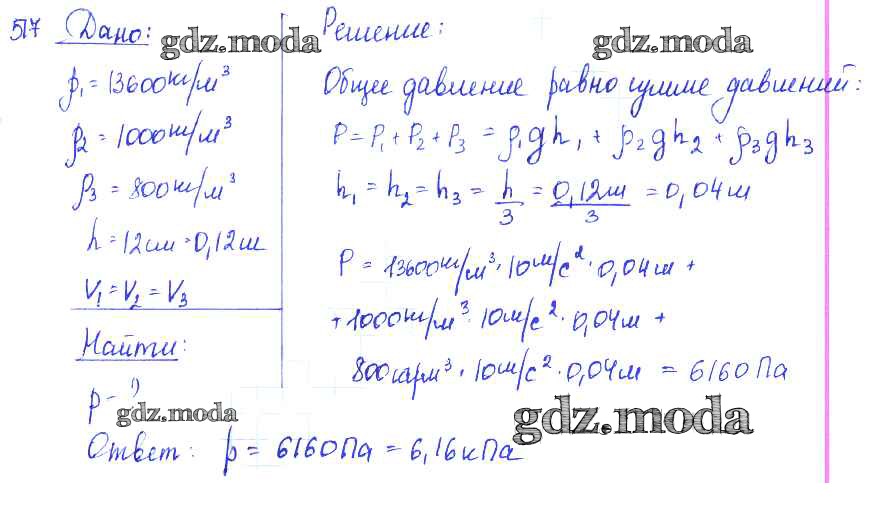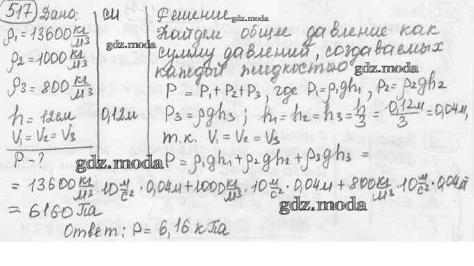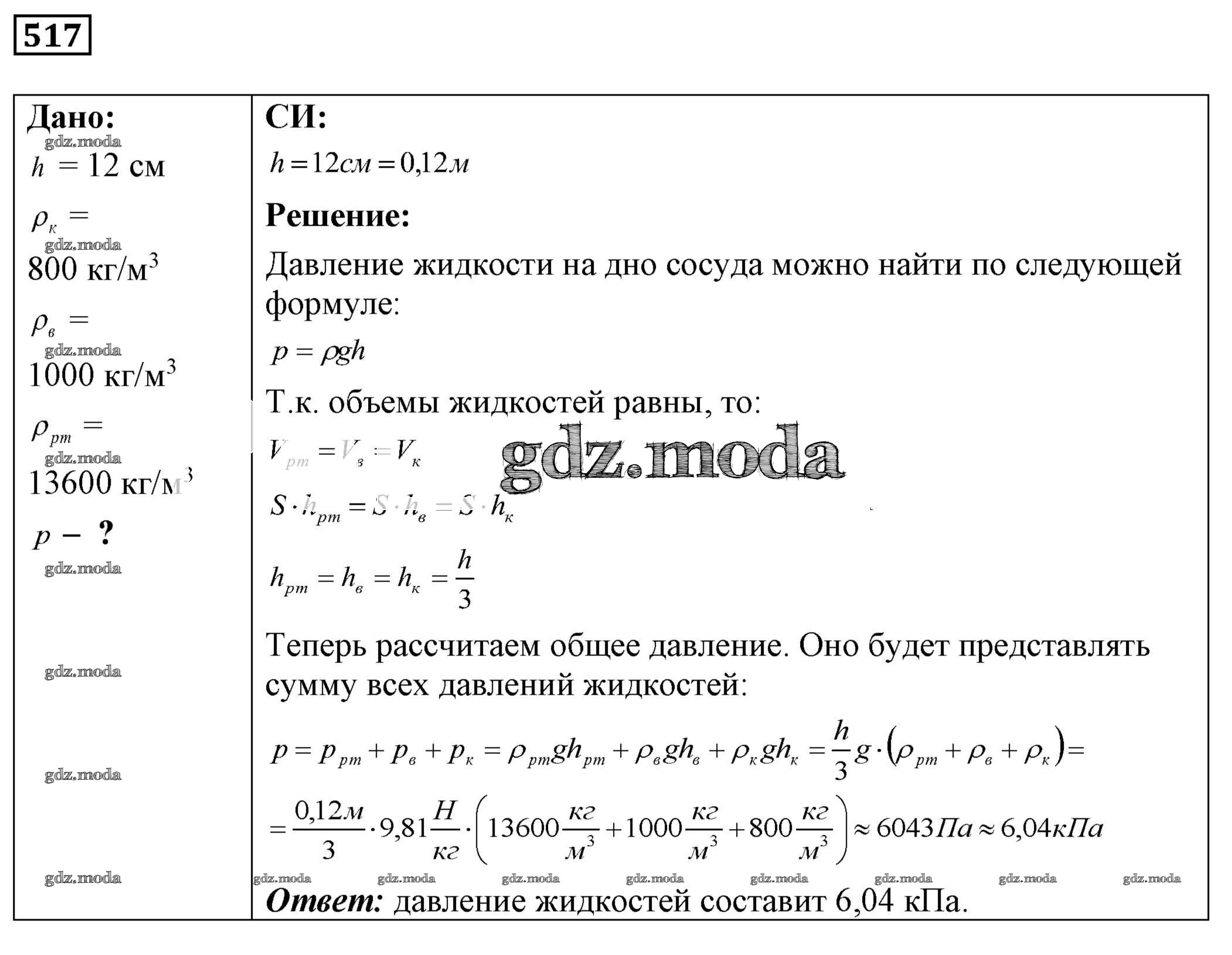 ОТВЕТ на задание № 517 Сборник задач по Физике 7-9 класс Лукашик