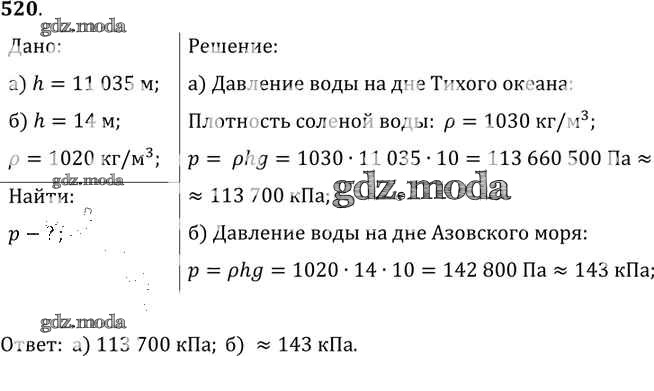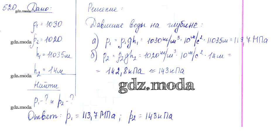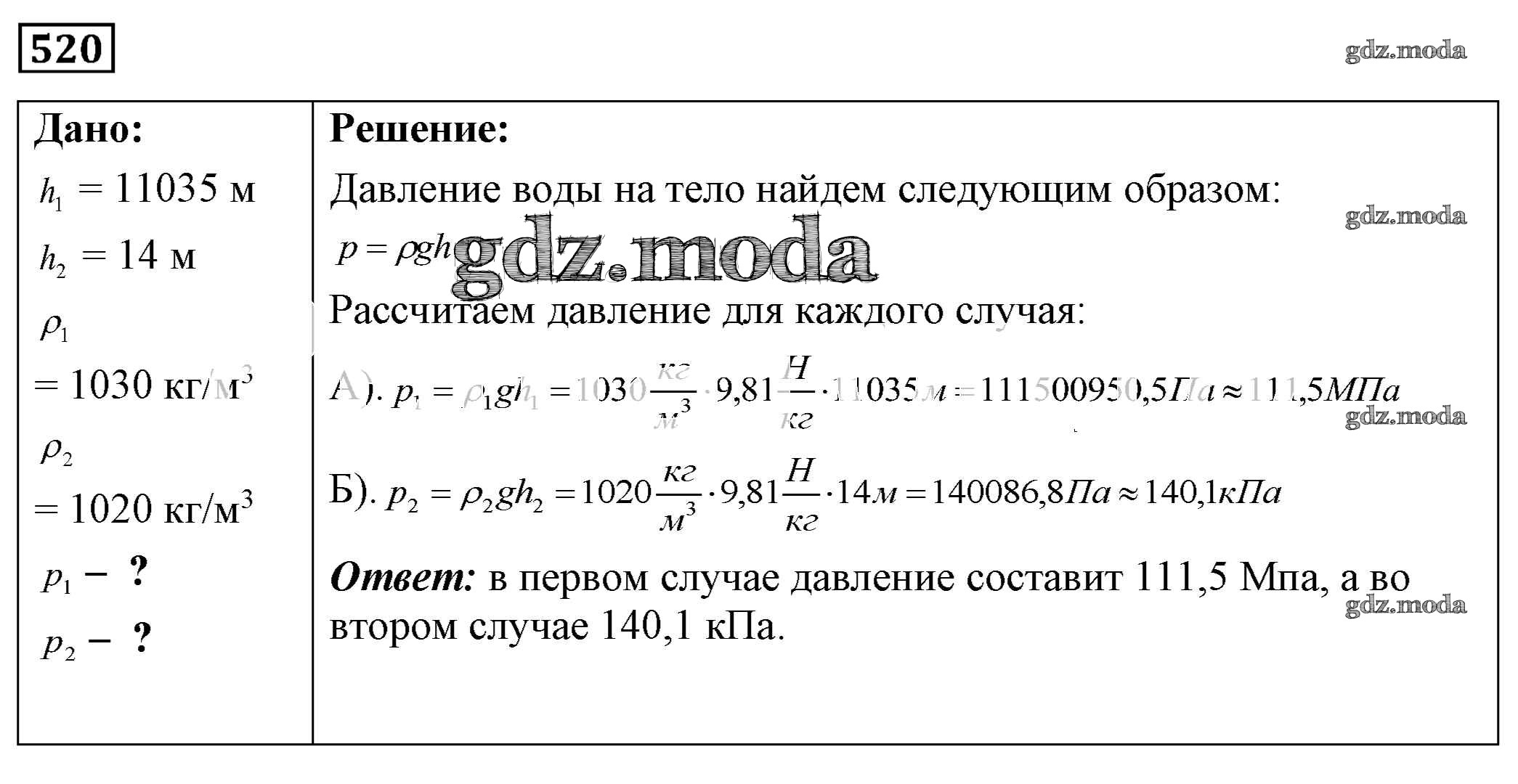 ОТВЕТ на задание № 520 Сборник задач по Физике 7-9 класс Лукашик