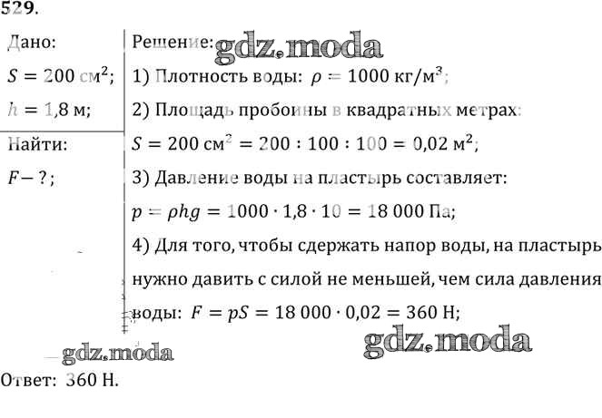 ОТВЕТ на задание № 529 Сборник задач по Физике 7-9 класс Лукашик