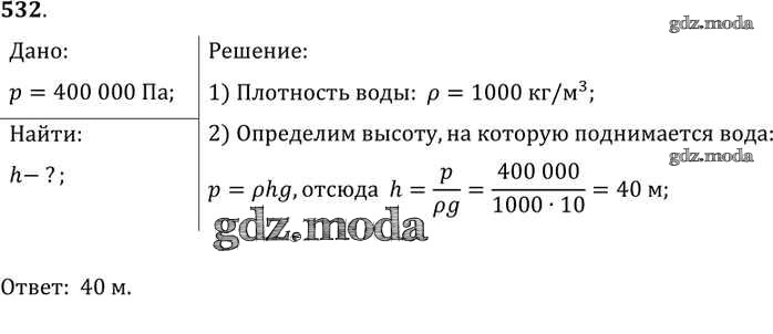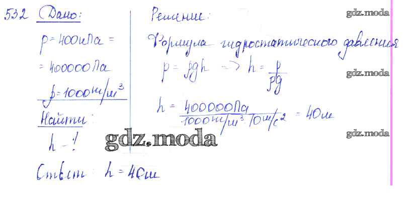 ОТВЕТ на задание № 532 Сборник задач по Физике 7-9 класс Лукашик