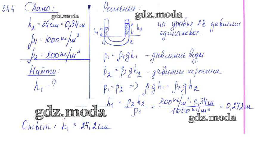ОТВЕТ на задание № 544 Сборник задач по Физике 7-9 класс Лукашик