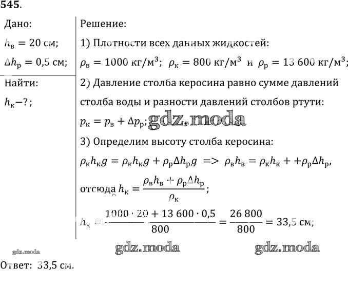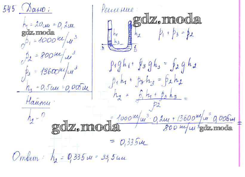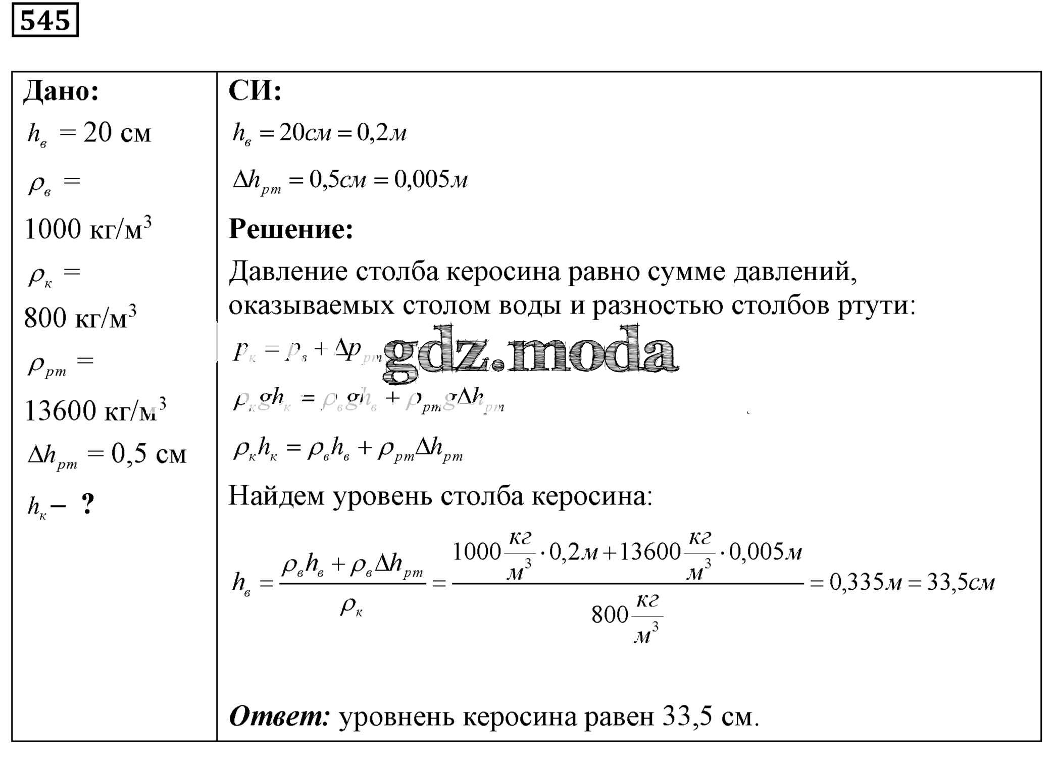 ОТВЕТ на задание № 545 Сборник задач по Физике 7-9 класс Лукашик