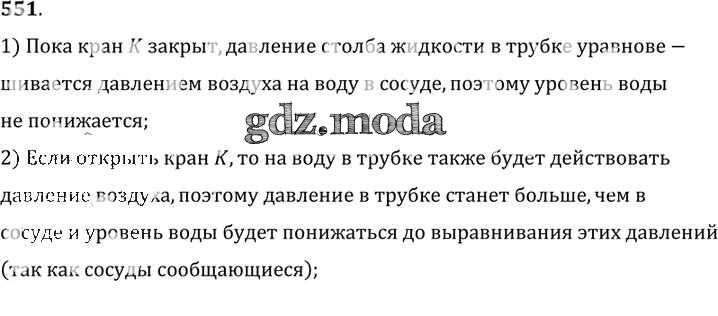 ОТВЕТ на задание № 551 Сборник задач по Физике 7-9 класс Лукашик