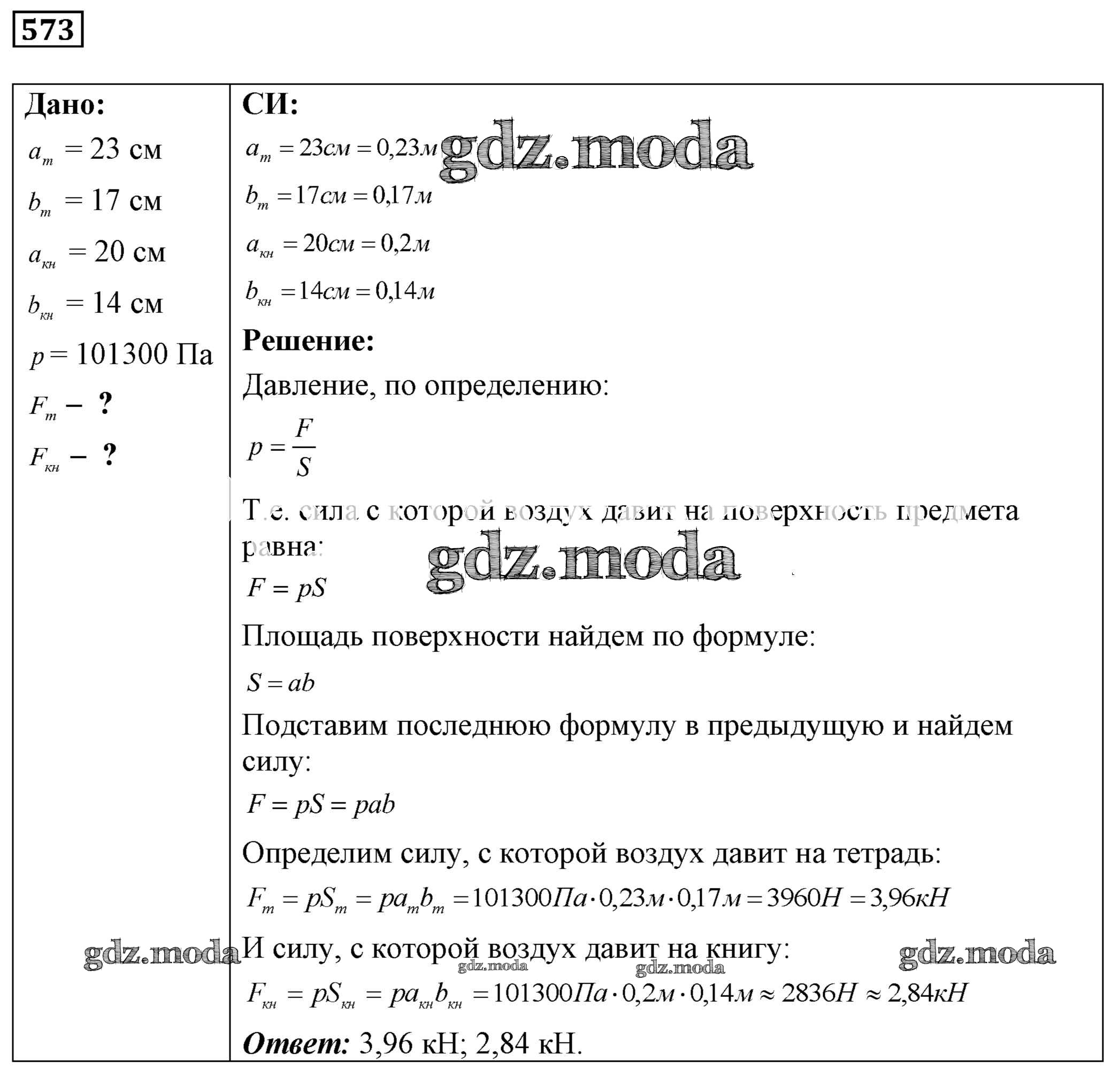 ОТВЕТ на задание № 573 Сборник задач по Физике 7-9 класс Лукашик