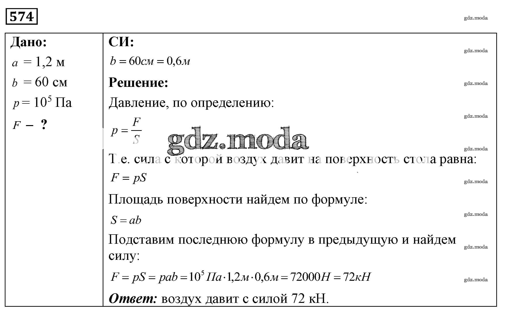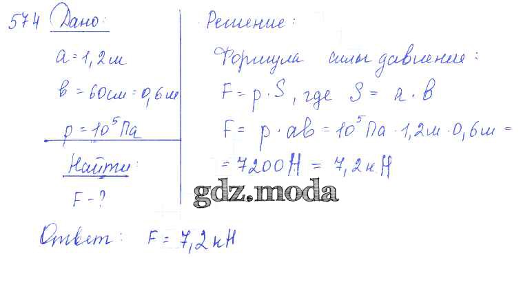 ОТВЕТ на задание № 574 Сборник задач по Физике 7-9 класс Лукашик