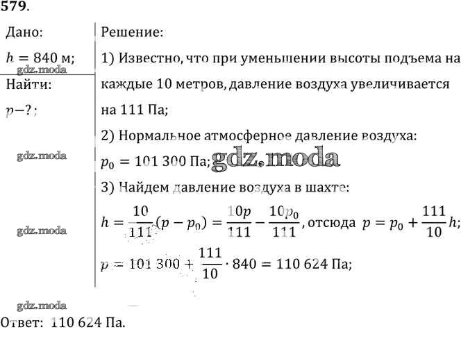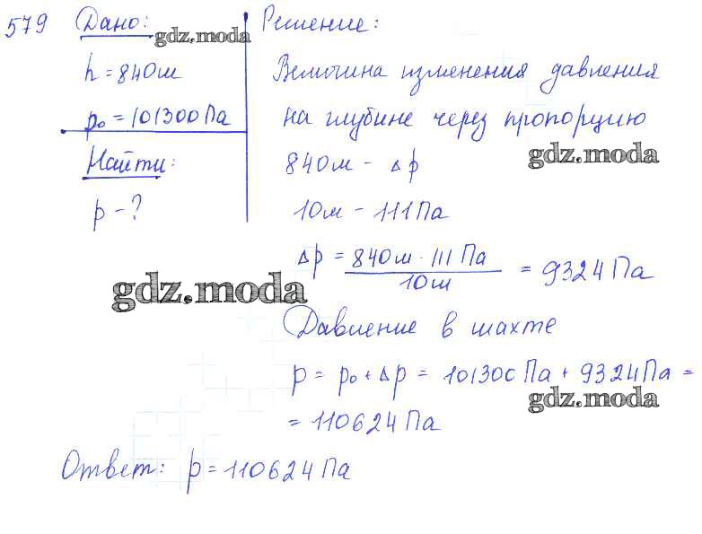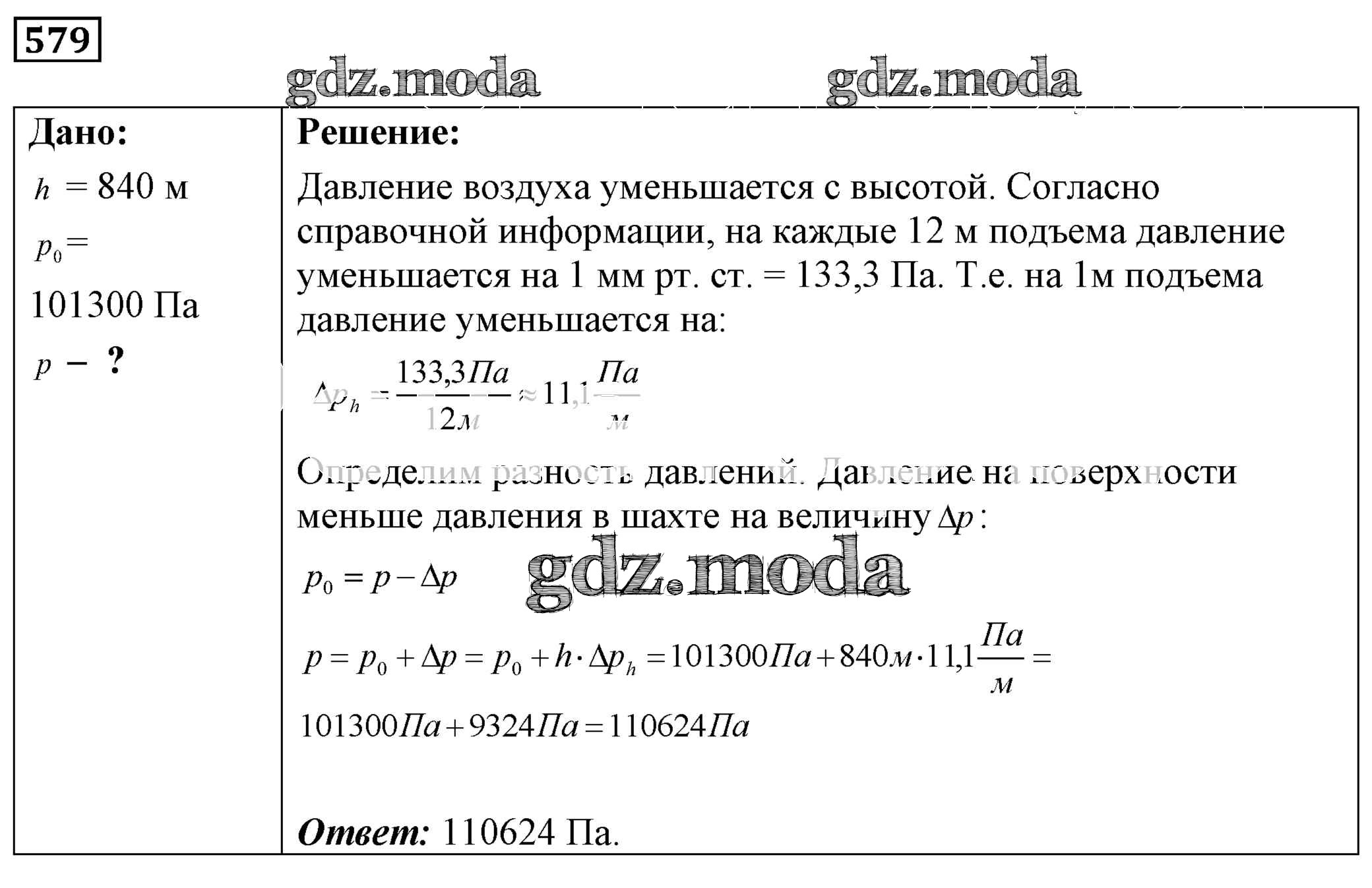 ОТВЕТ на задание № 579 Сборник задач по Физике 7-9 класс Лукашик