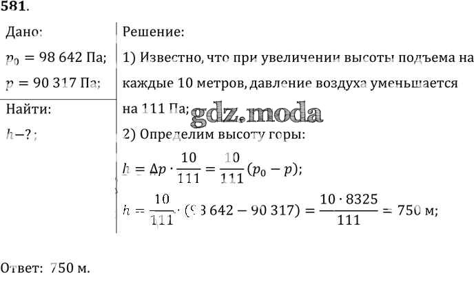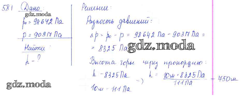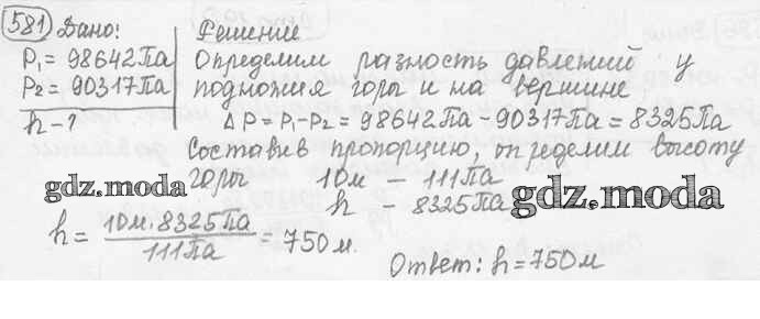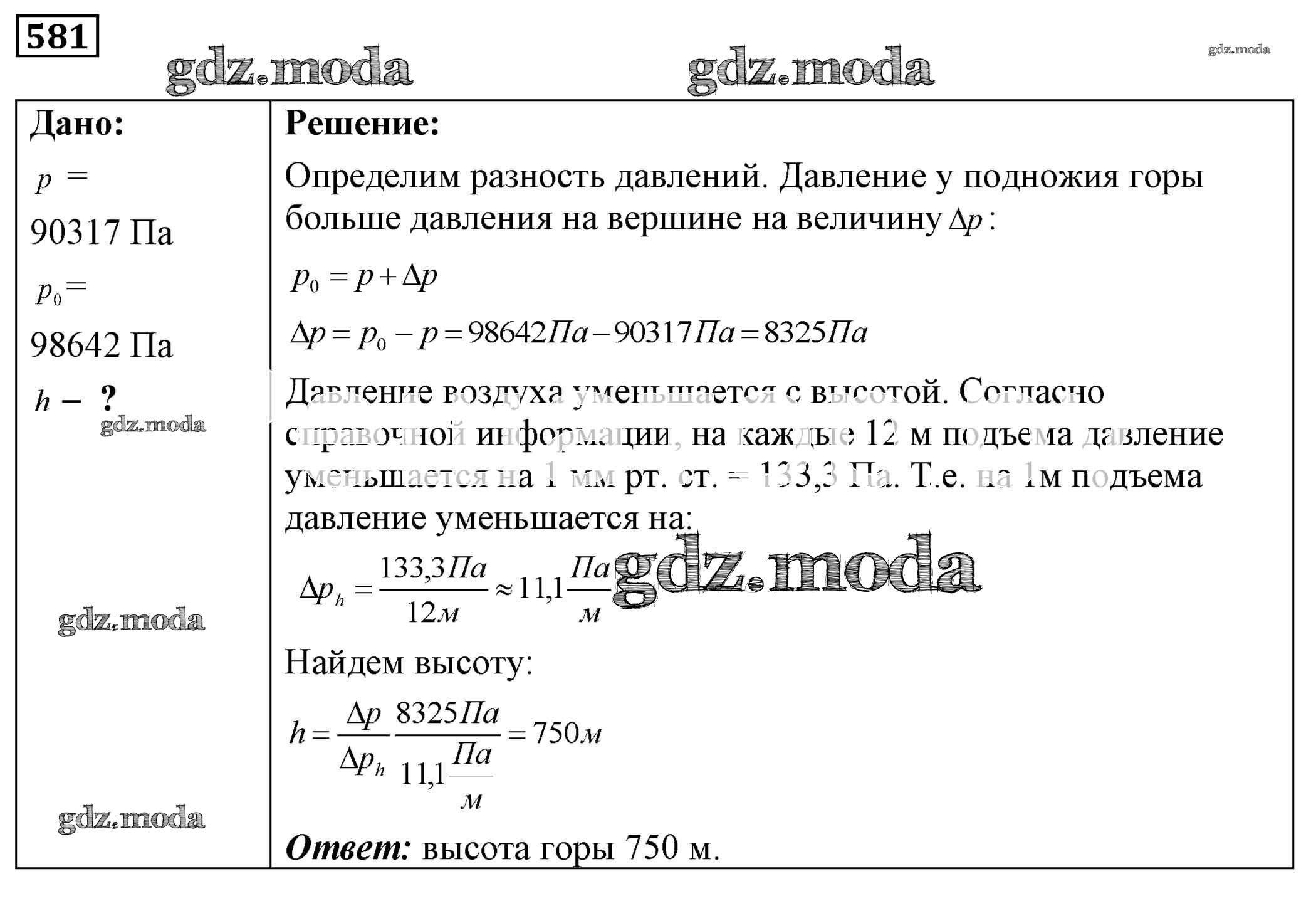 ОТВЕТ на задание № 581 Сборник задач по Физике 7-9 класс Лукашик