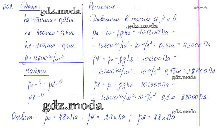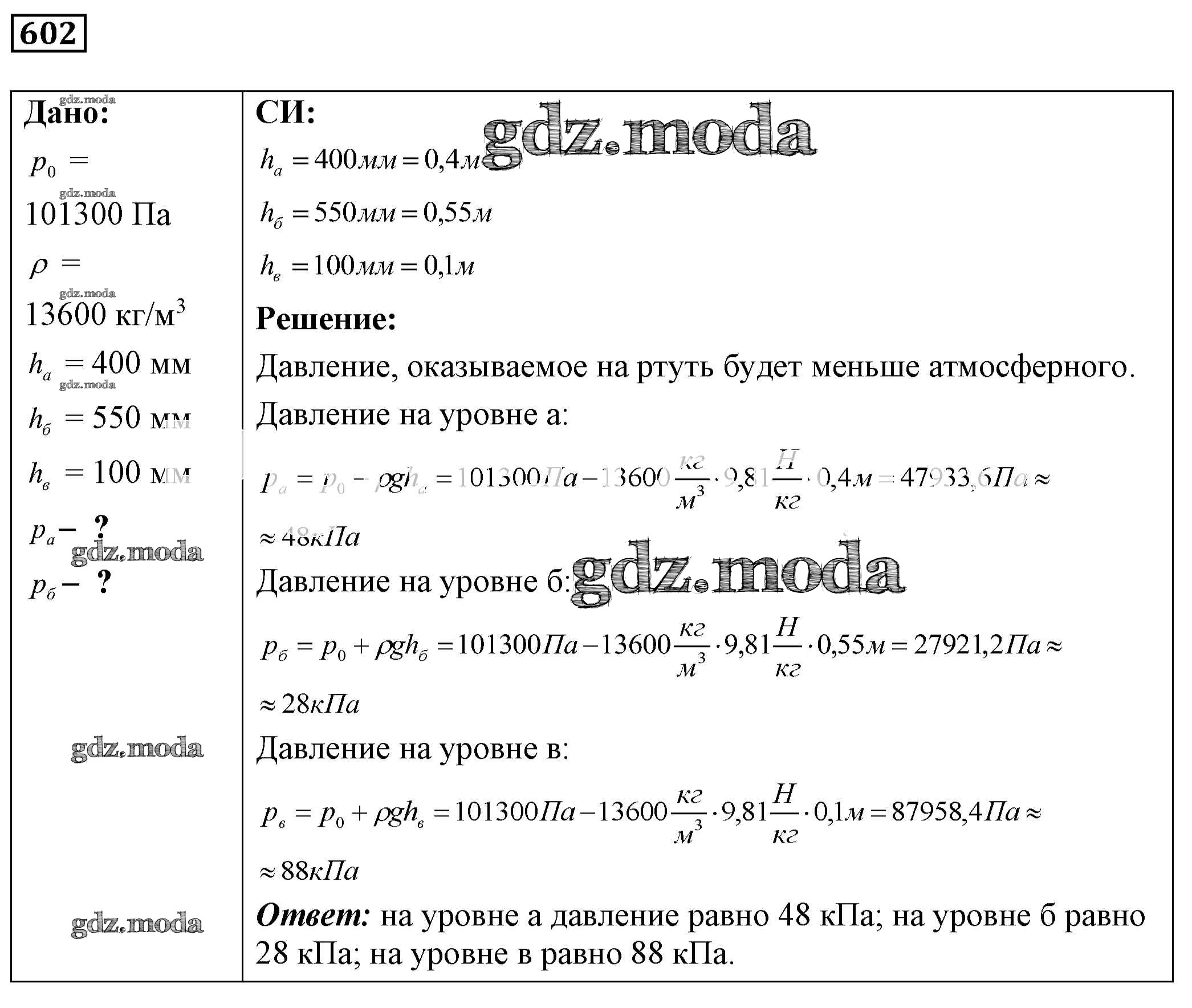 ОТВЕТ на задание № 602 Сборник задач по Физике 7-9 класс Лукашик