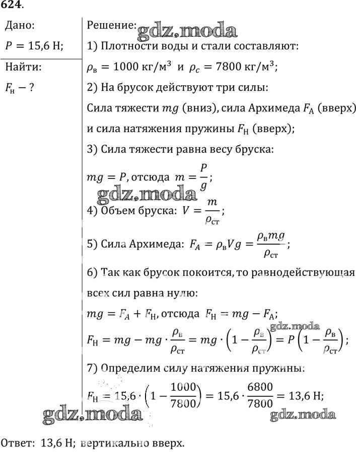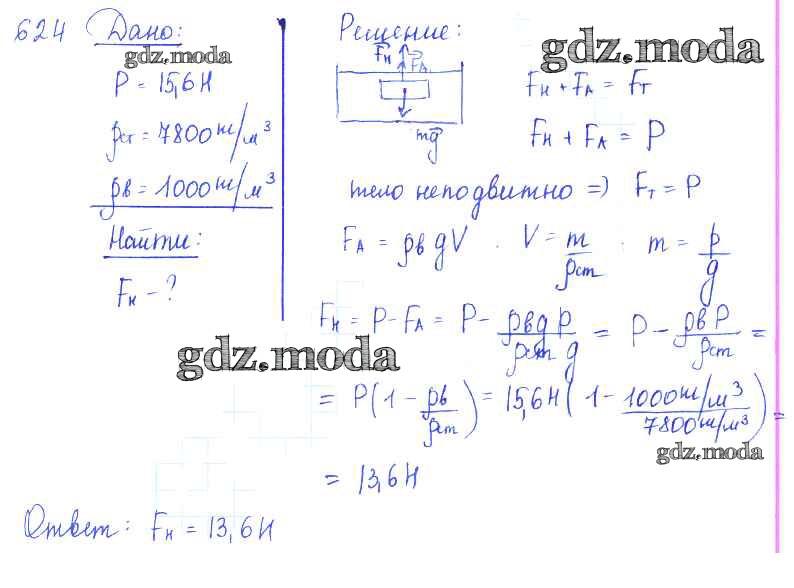 ОТВЕТ на задание № 624 Сборник задач по Физике 7-9 класс Лукашик