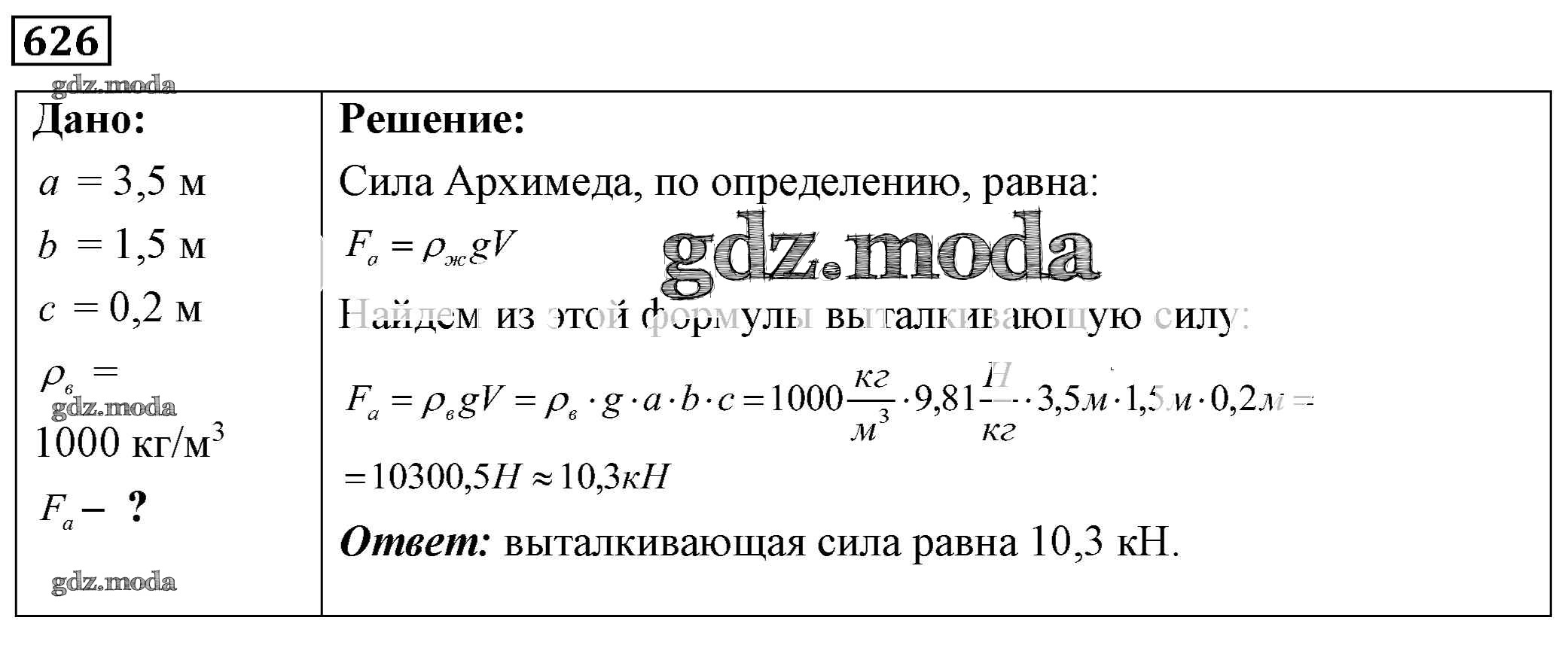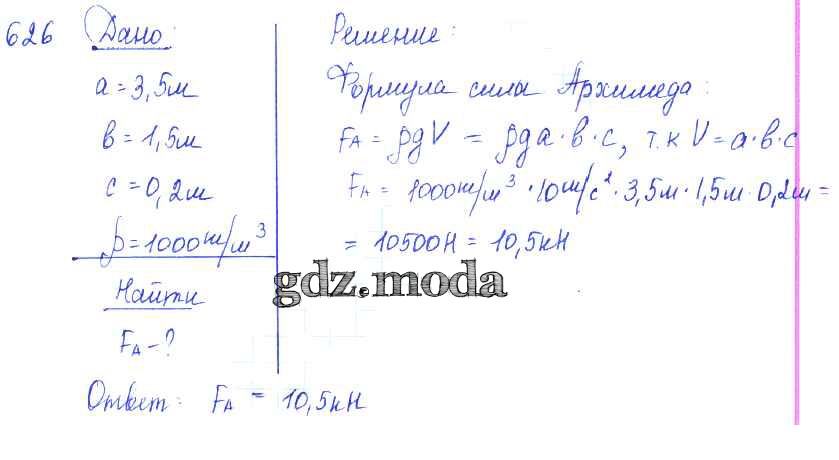 ОТВЕТ на задание № 626 Сборник задач по Физике 7-9 класс Лукашик